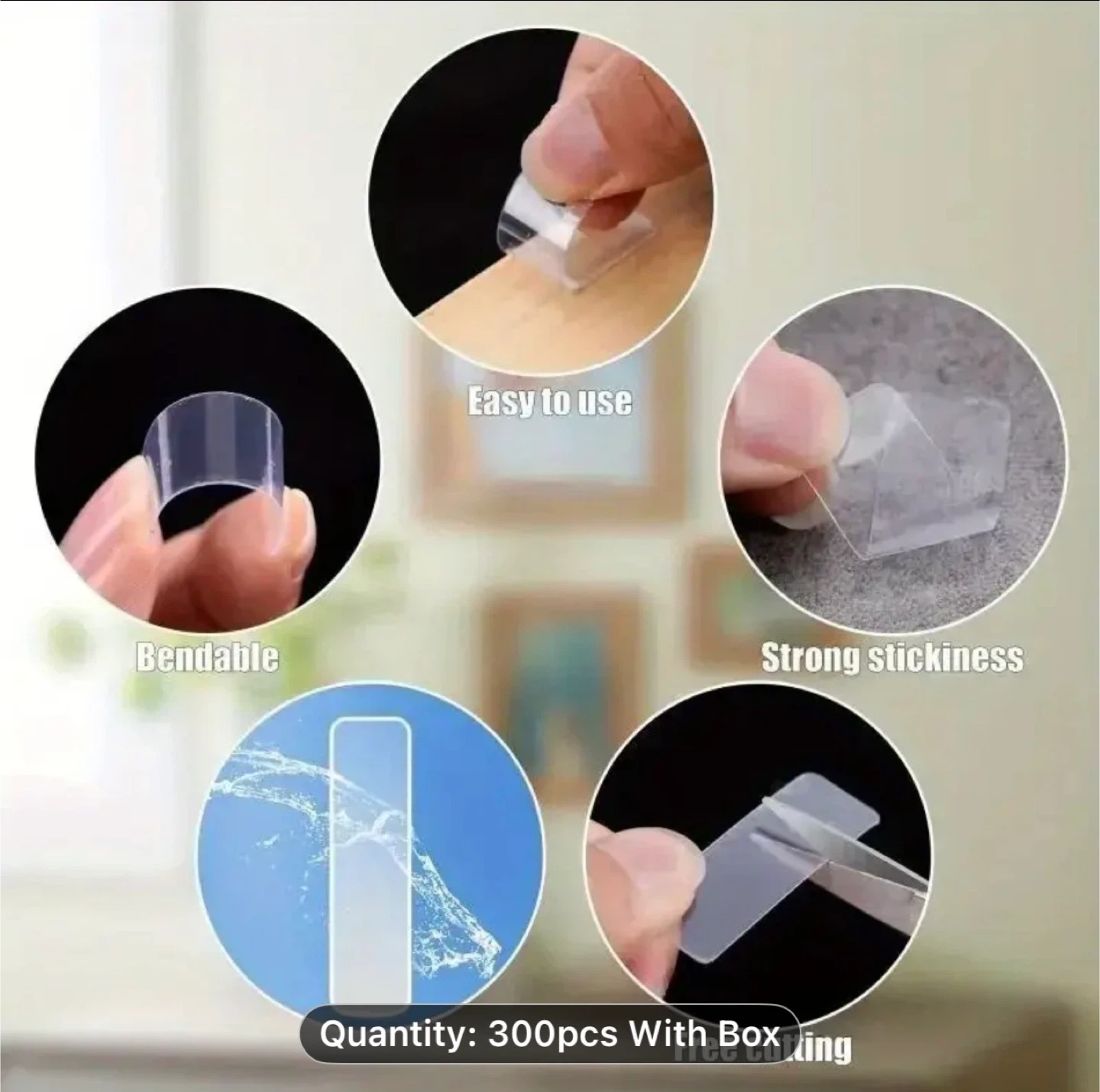 6360pcs a pack/ 5 packs 300pcs a box Heavy Duty Double Sided Tape - Super Strong Removable No Residue, Transparent Clear Adhesive Stickers, Nano PVC (Acrylic) for Walls, Pictures, Posters, Crafts, Home, Office, DIY - with Storage Case - Ideal for Beginners & Professionals, Wall Mounting, Compact Packaging, Durable Material, Office Workers