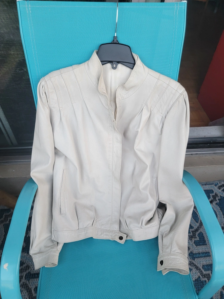 Selling a cream-coloured leather skirt and jacket set. Both pieces are in great condition and made of soft leather. Perfect for adding a touch of vintage style to your wardrobe!