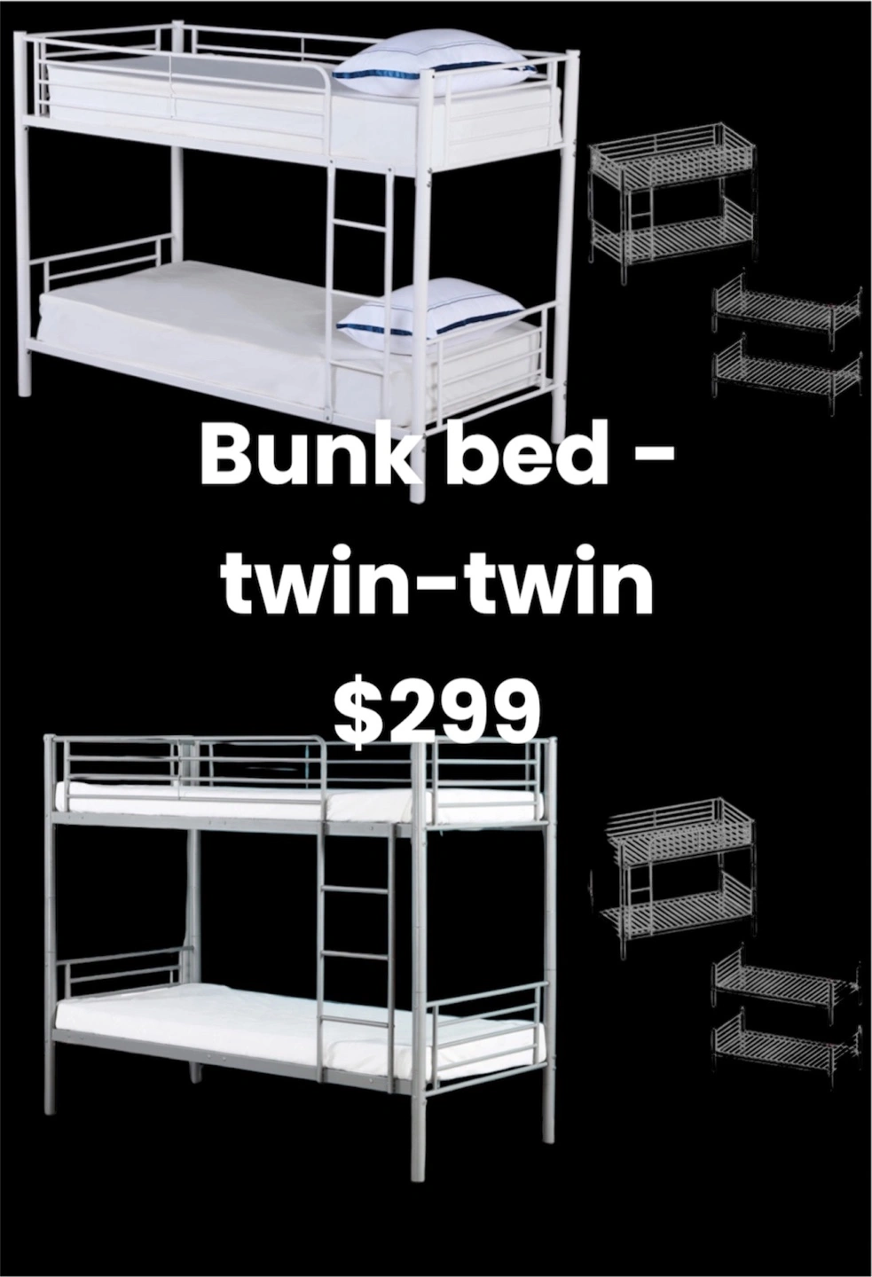 Selling a twin-twin bunk bed in white! It's perfect for kids' rooms or guest rooms where you need to maximize space. Originally priced at $299.