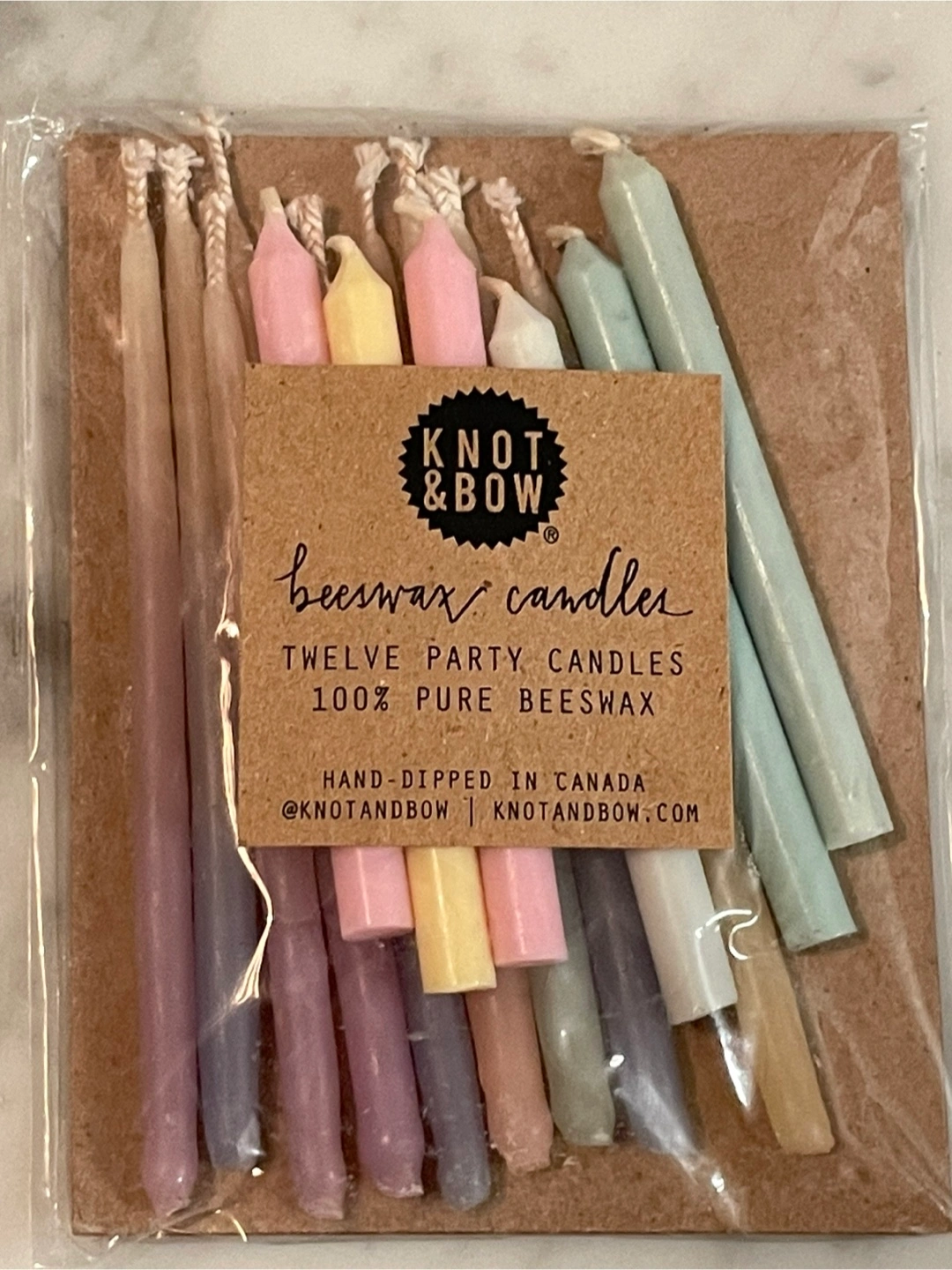 I have a new pack of Knot & Bow beeswax candles for sale. These are hand-dipped in Canada and made of 100% pure beeswax. The pack includes twelve party candles in a variety of pastel colours. Originally bought for $11.50, these would be great for a birthday or special occasion.