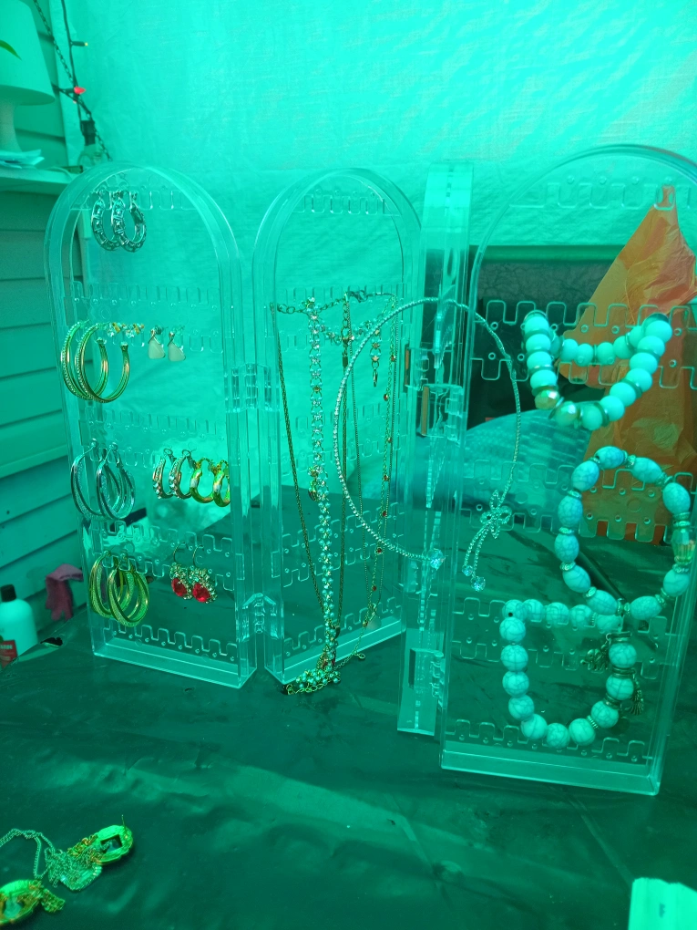 Keep your jewelry neat and tidy with this clear acrylic organizer! It's perfect for displaying earrings, necklaces, and bracelets. This stand is a great way to keep your favourite pieces easily accessible and looking their best