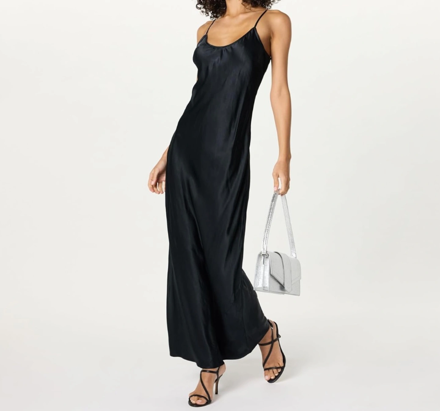 This is a beautiful black slip dress from The Drop! It's a size medium and made of 3% polyester and 97% elastane. Perfect for a night out or a special occasion