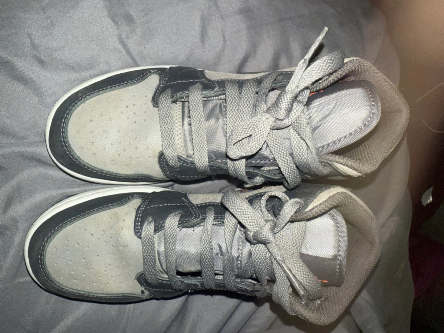 Selling a pair of Nike Air Jordan 1 Mid in Smoke Grey. They have some signs of wear, as shown in the photos, but still have plenty of life left!