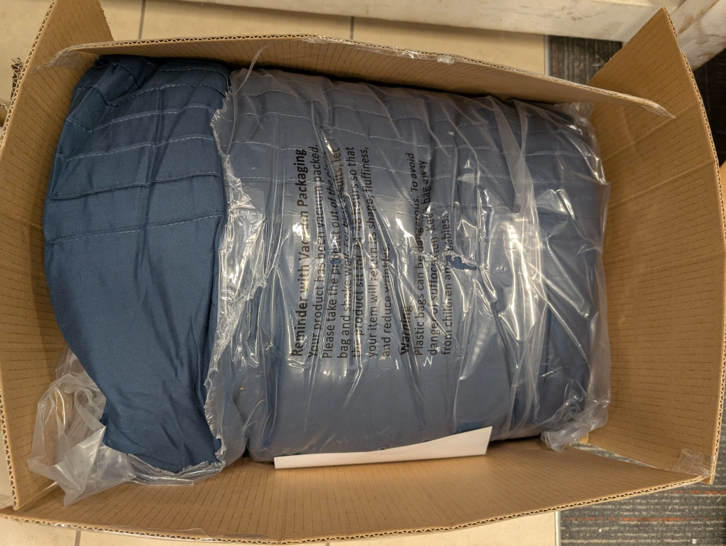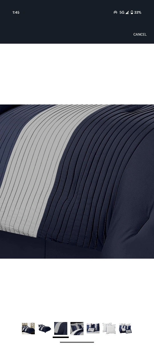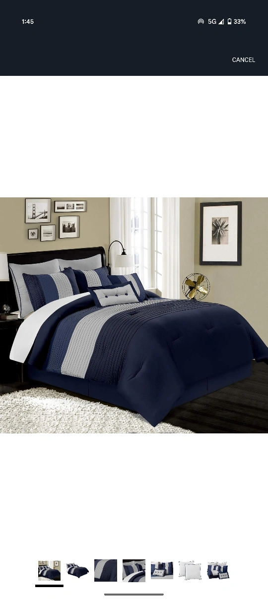 This is a beautiful navy and grey comforter set. It's brand new never used and would look fantastic in any bedroom. Take a look at the photos to see all the details!