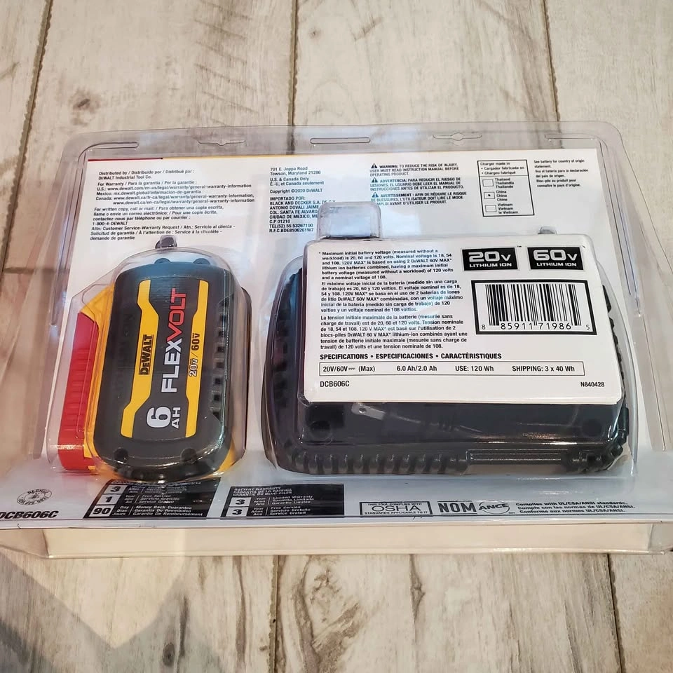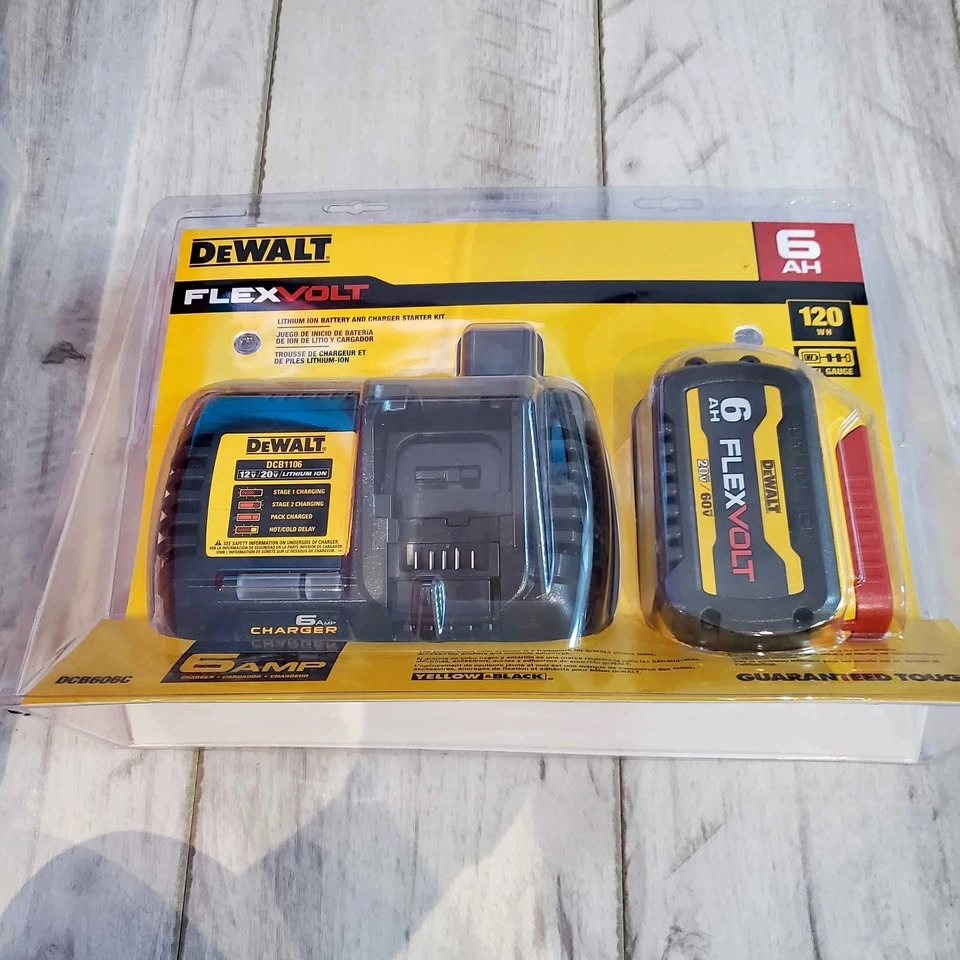 Brand New Dewalt 20v 6ah Flexvolt Lithium Ion Battery and Charger Sealed in original packaging Comes from a pet free and smoke free home Thanks for looking!!