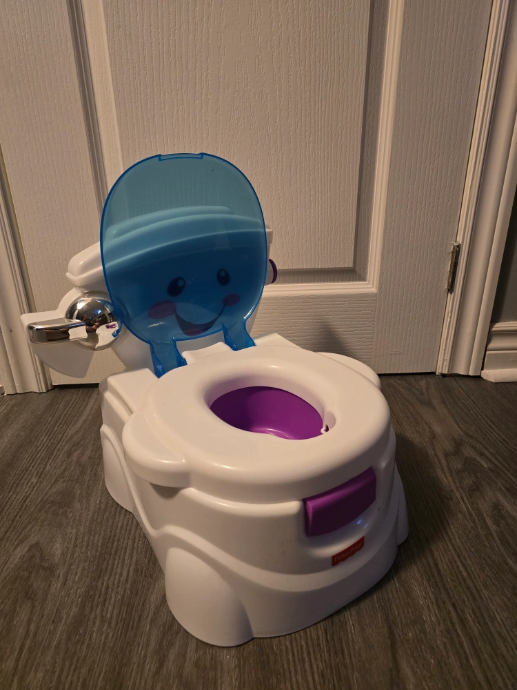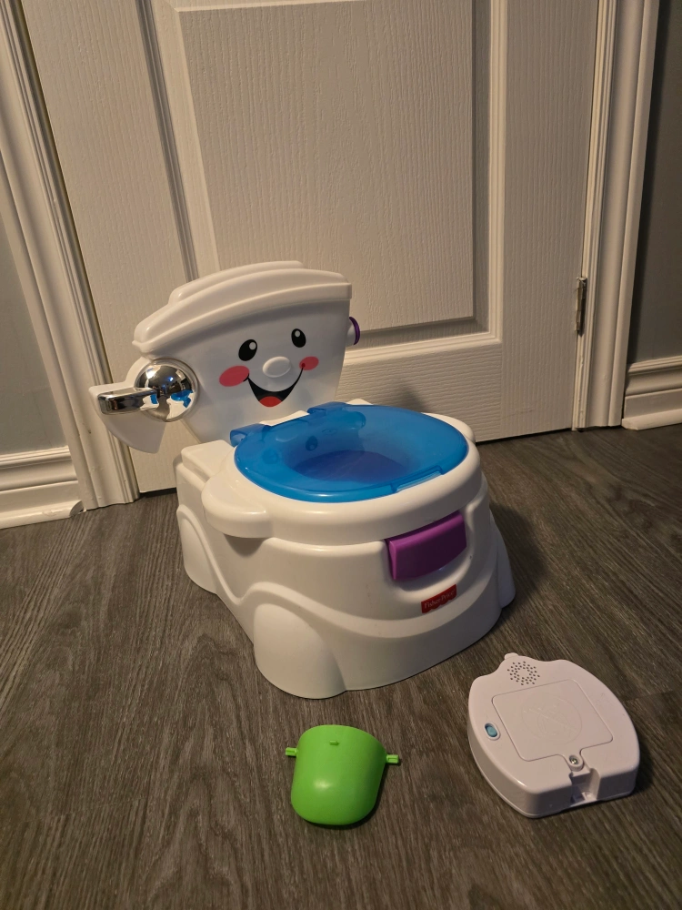 176Pick up in North York Keele St and Wilson Ave area Gently used; in great condition AI: Get your little one ready for the big leagues with this Fisher-Price potty training toilet! It's designed to make potty training fun and engaging with realistic features like a "flush" handle that makes clicking sounds, a toilet seat and lid that lift, and even a retractable toilet paper roll holder. The removable potty ring helps kids transition to the adult toilet, and the removable bowl and built-in splash guard make it easy to clean. Recommended for potty-training infants and toddlers ages 18-36 months