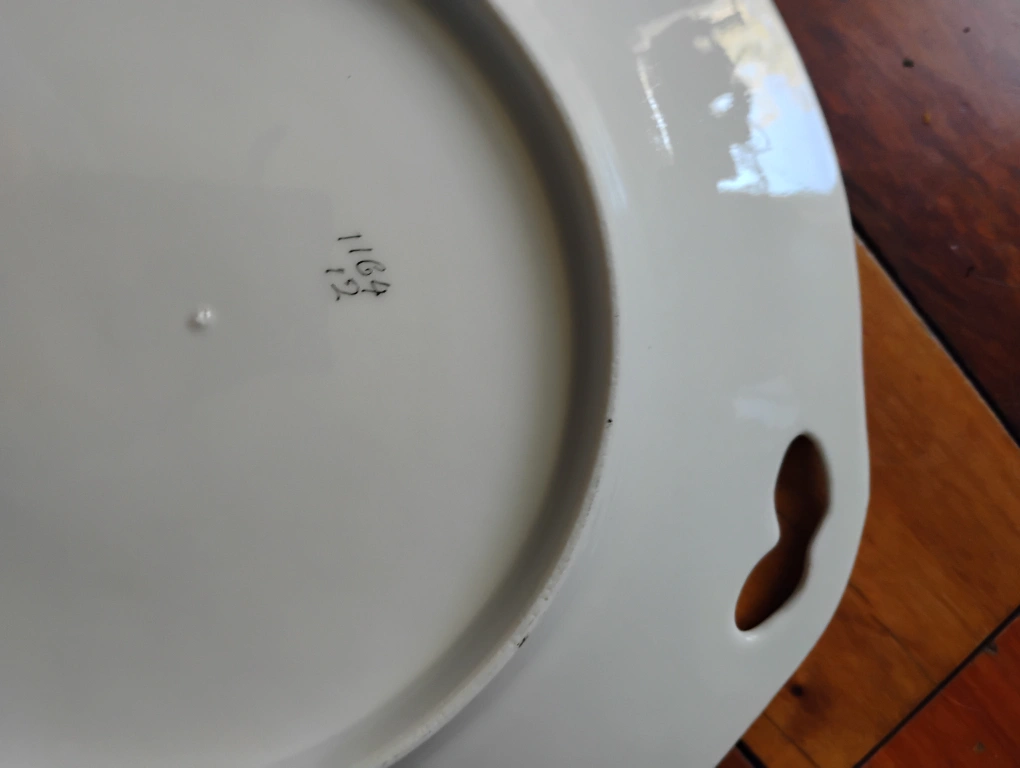 Selling a lovely vintage decorative plate with a floral design. It has a unique handle design and would make a great addition to any collection or as a decorative piece in your home. The plate is in good condition for its age