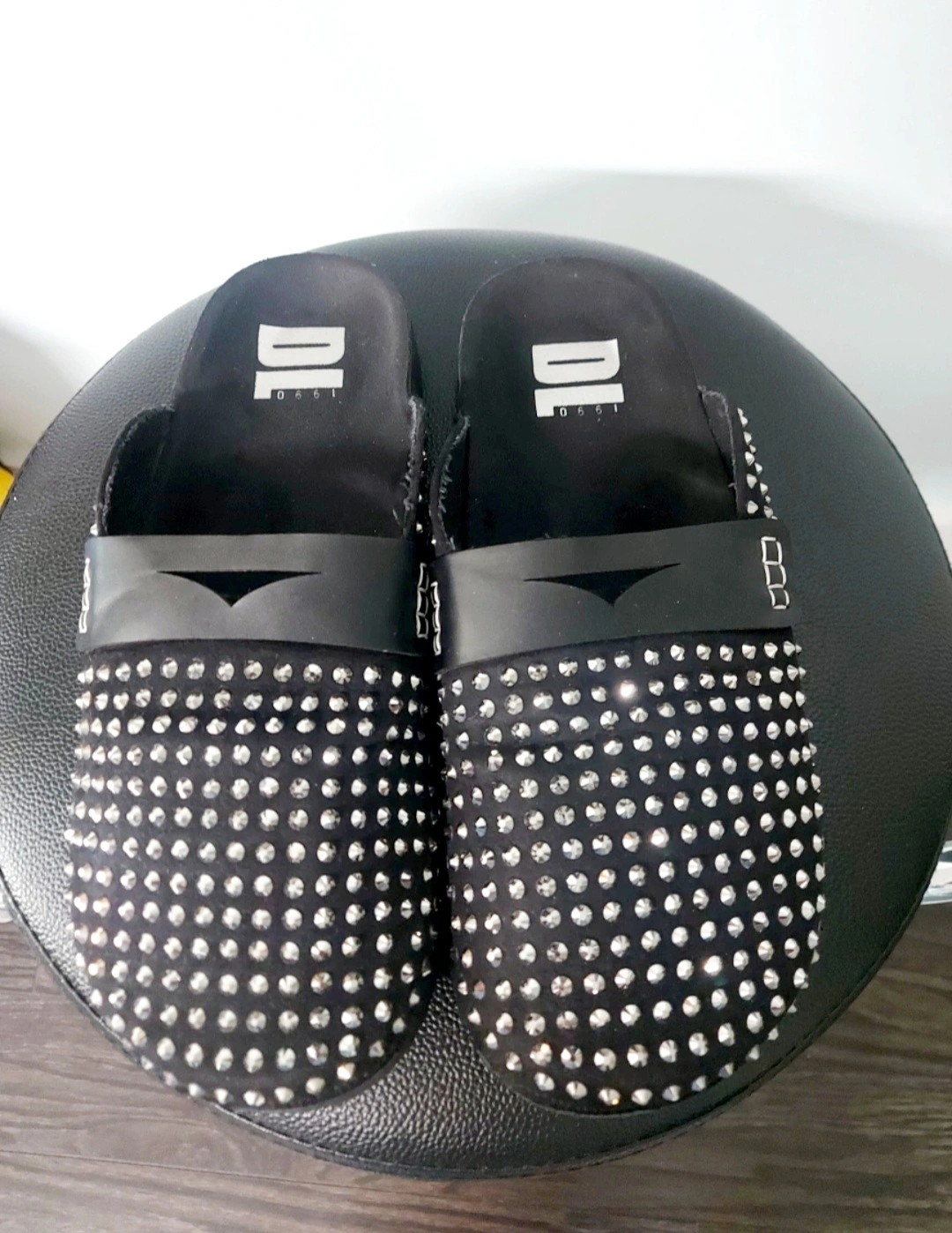 541These black slides from DL 1961 are super stylish! They feature a cool studded design. Perfect for adding a bit of sparkle to your casual outfits