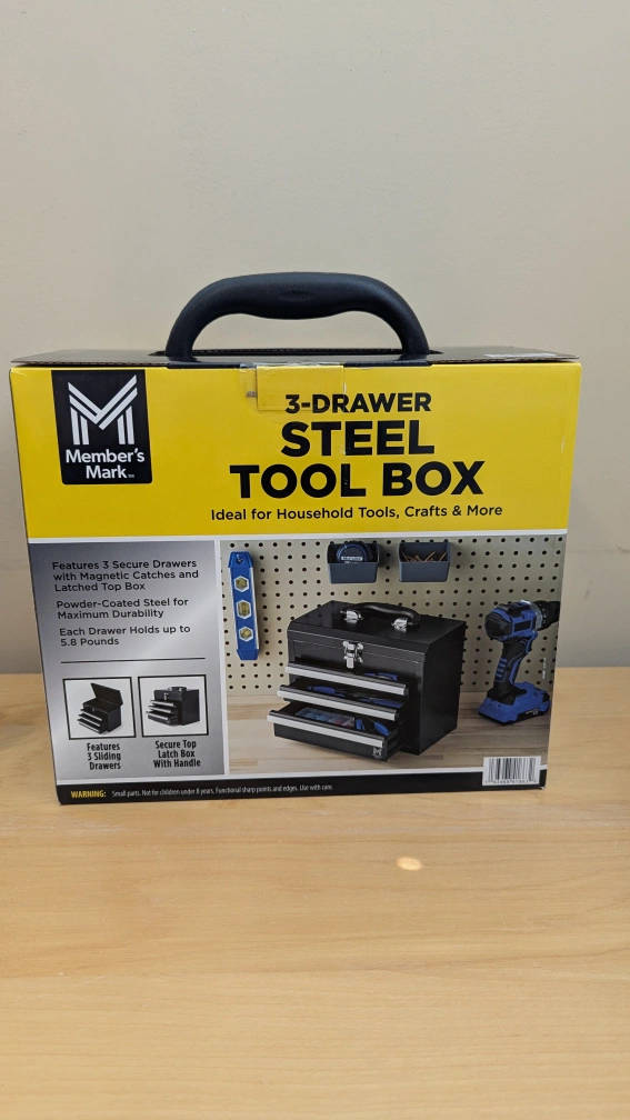 Selling a brand new Member's Mark 3-Drawer Steel Tool Box! It's ideal for household tools, crafts, and more.