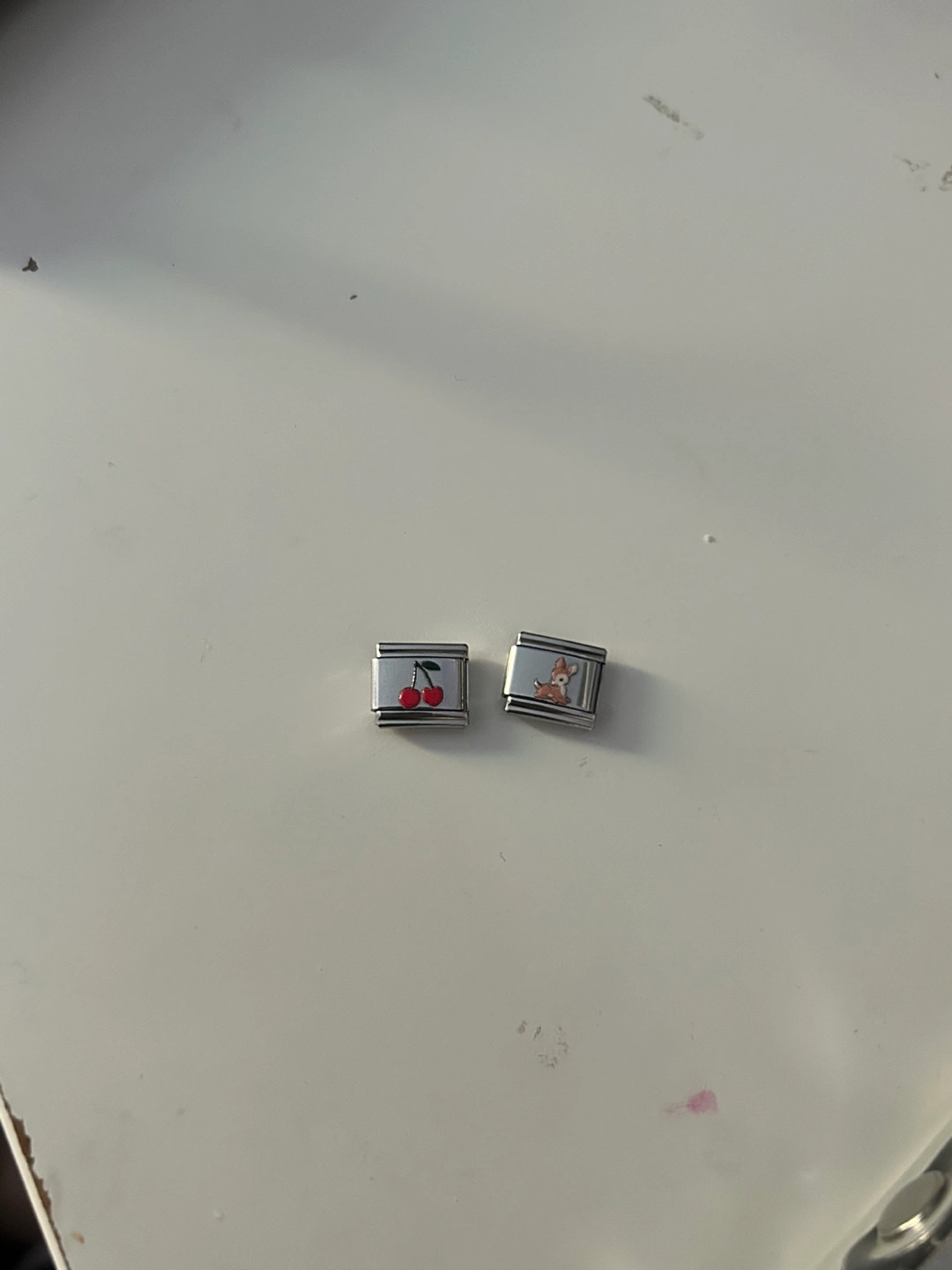 Selling two cute Brandy Melville viral italian bracelet charms! One has a cherry design and the other has a deer on it. They're in great condition and ready to add some flair to your bracelet! Second photo is proof that it is real from brandy melville! selling each charm for $3, or both for $5!