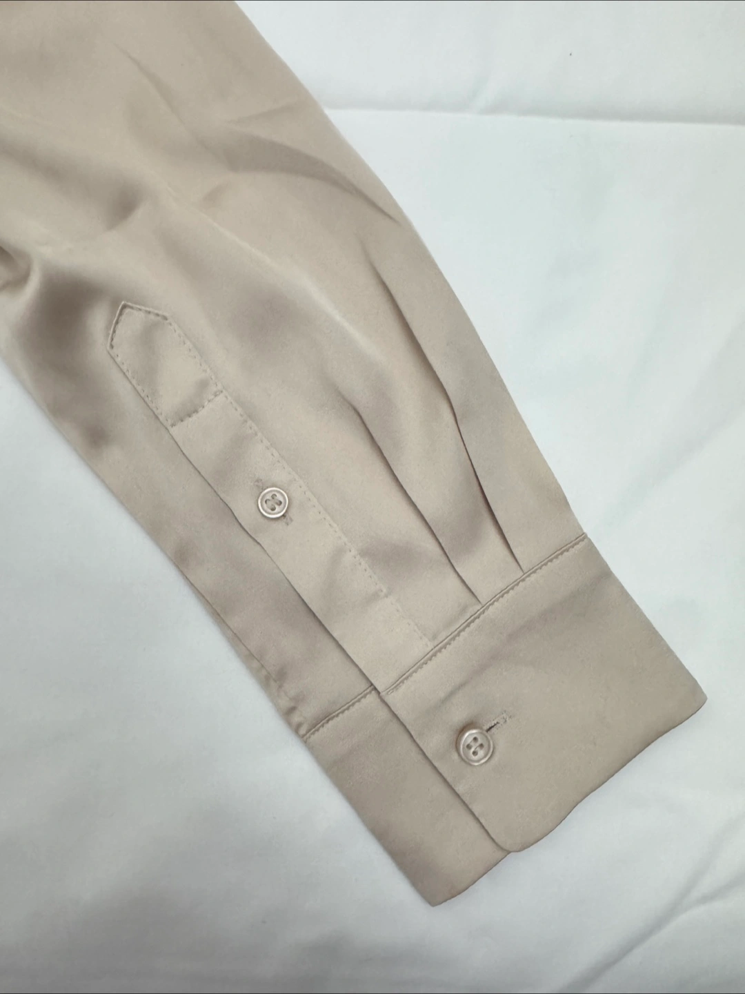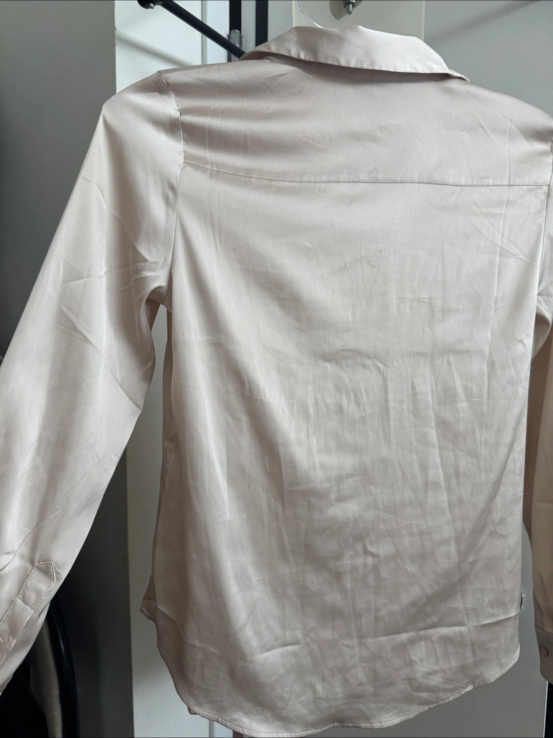 Champagne-coloured button-up shirt from H&M in size XS. It's in great condition and originally cost $19.99. Perfect for dressing up or down!