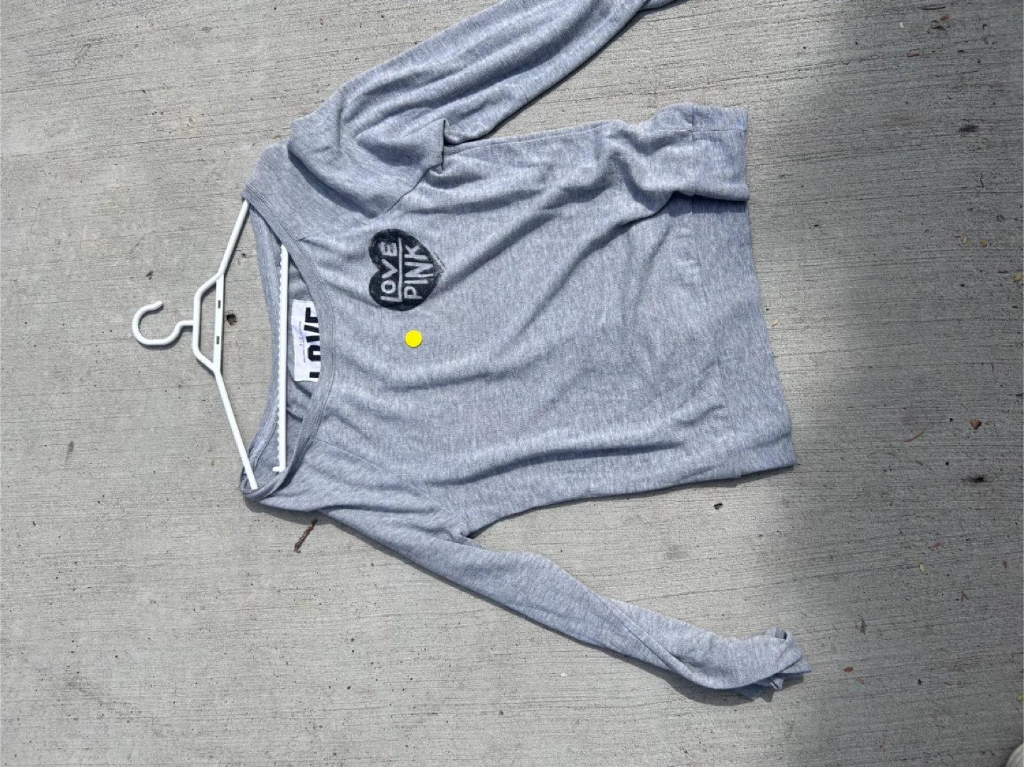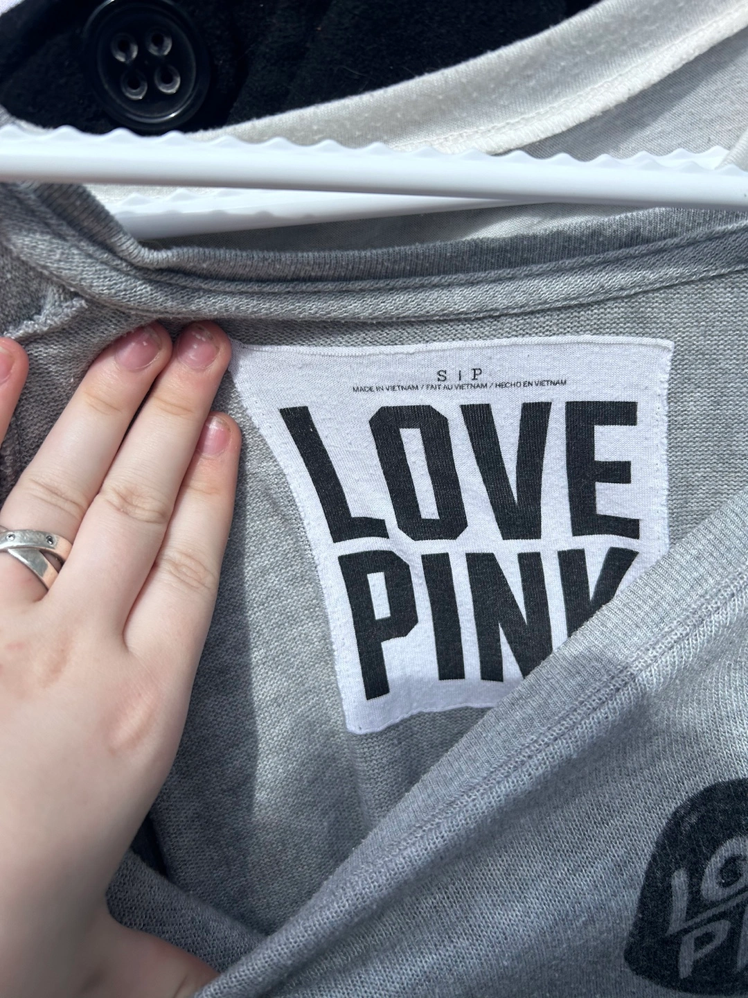 Selling a Love Pink grey pullover. It's a size small and in great condition!