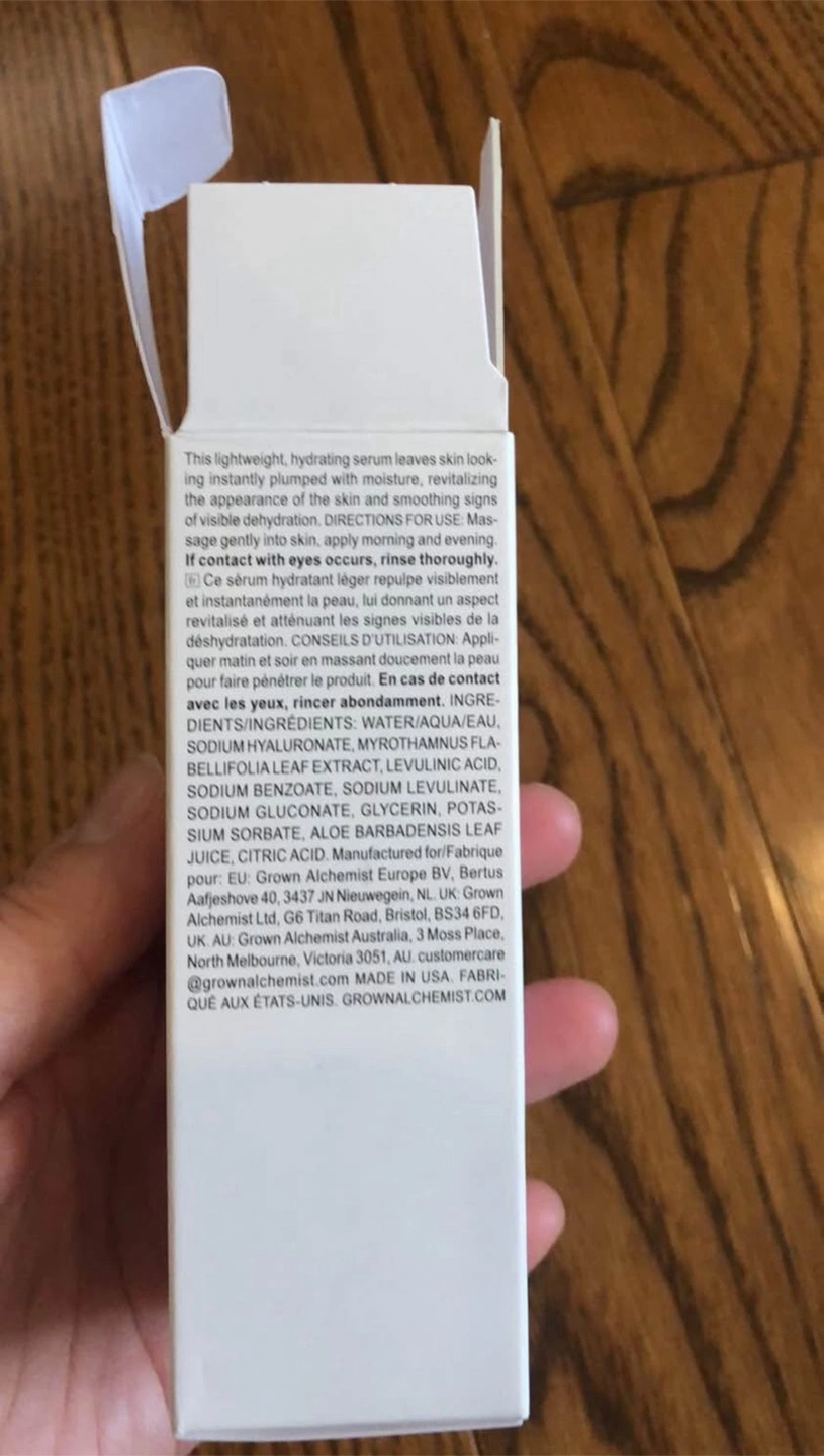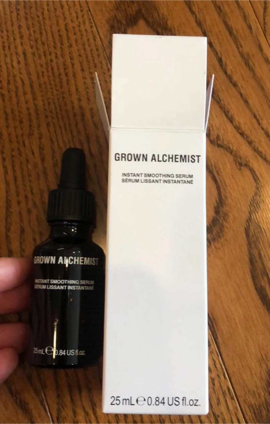 Selling a Grown Alchemist Instant Smoothing Serum. It's a lightweight, hydrating serum that leaves skin looking instantly plumped with moisture, revitalizing the appearance of the skin and smoothing signs of visible dehydration. It comes in a 25ml bottle and includes the box