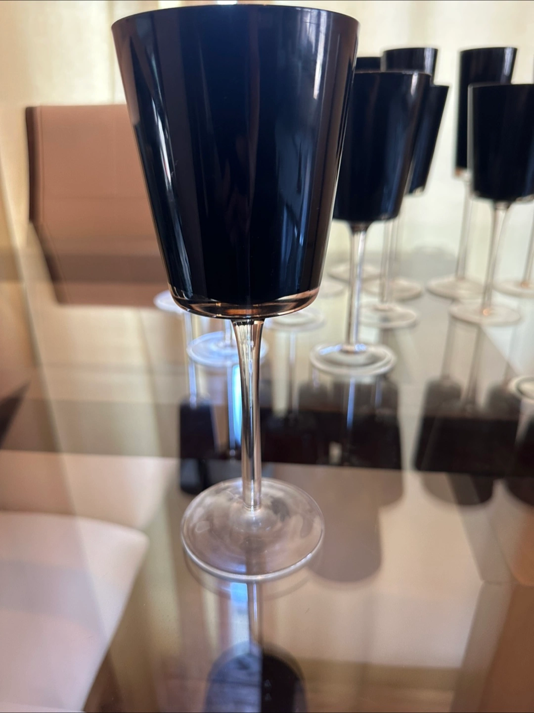 Selling a set of 15 elegant black stemmed glasses. They're in great condition and would make a lovely addition to any home bar or dining setting