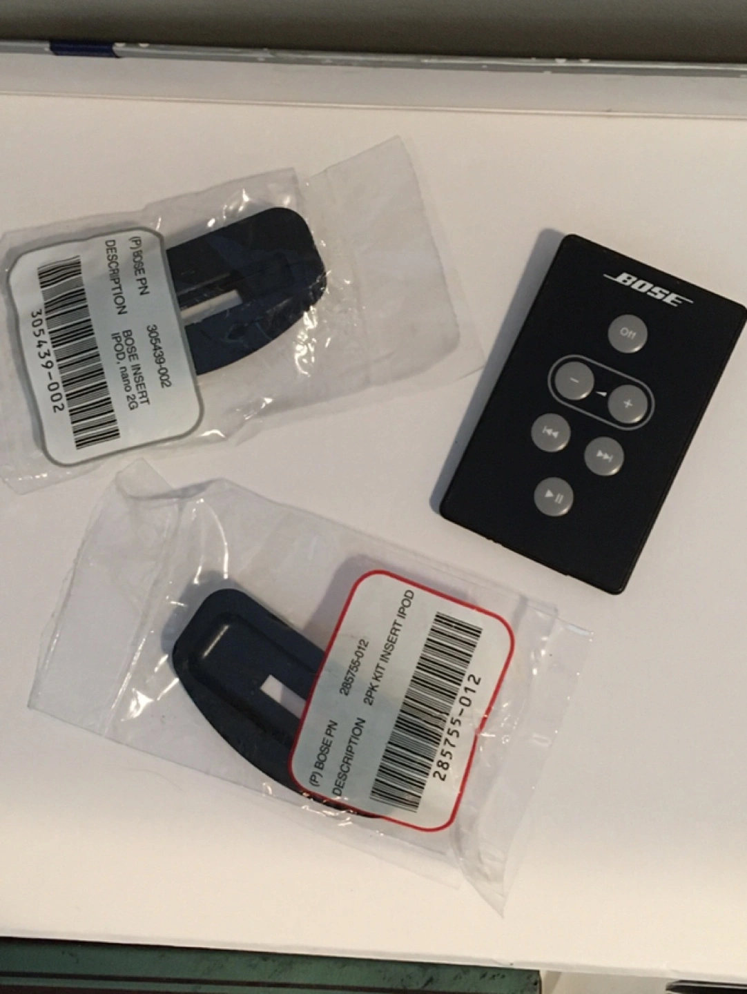 Selling a set of Bose Sounddock 1 inserts along with a Bose remote control . Perfect if you need replacements or extras!