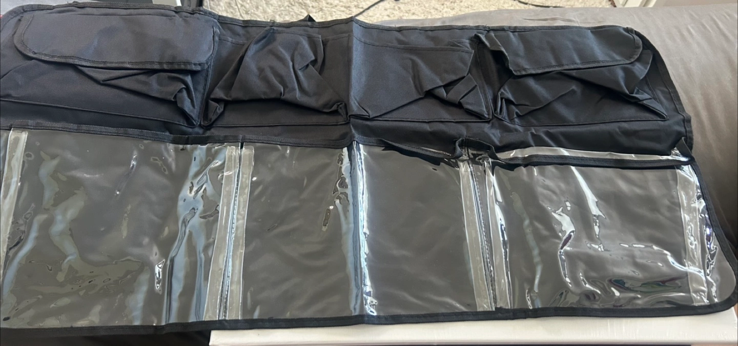 34Selling a brand new car backseat organizer in black! This organizer is perfect for keeping your car tidy and clutter-free. It has multiple pockets and compartments to store all your essentials while on the go. Easy to install and very convenient!