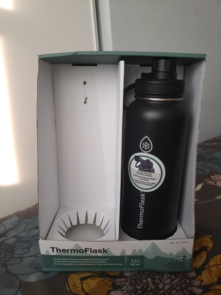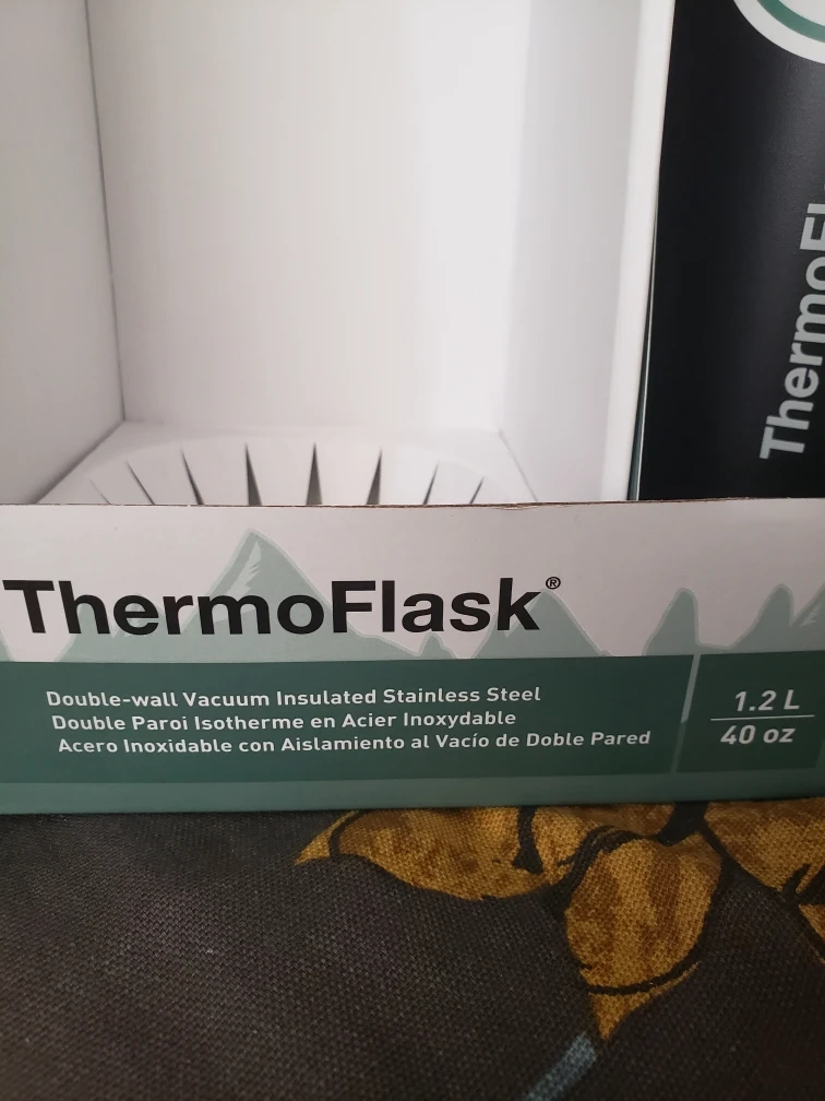 Selling a ThermoFlask stainless steel water bottle in great condition! It holds 1.2L or 40oz. This double-wall vacuum-insulated bottle keeps your drinks cold or hot for hours. Comes with the original box!