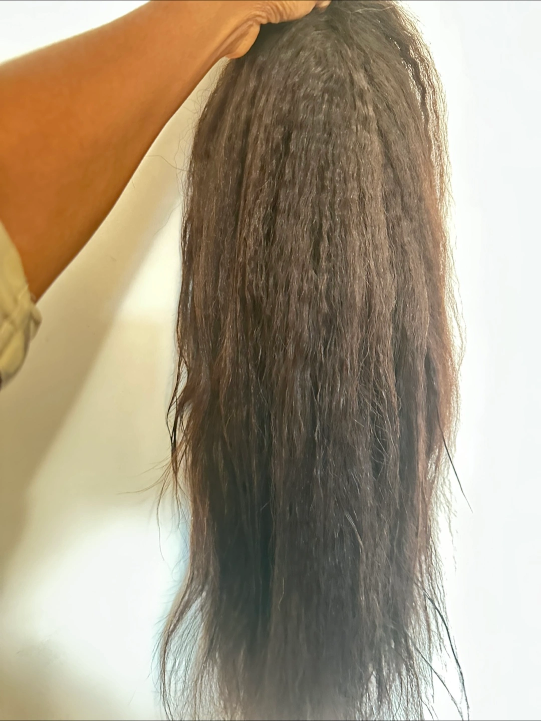 Selling a brown kinky straight wig. It's in great condition and ready for a new home! It's a beautiful wig that adds a touch of elegance to any look. Doesn’t come out when combing . Price is negotiable