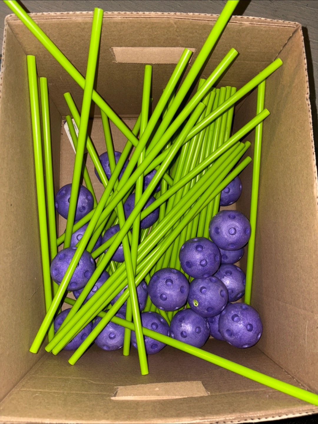 I'm selling a fun fort building kit! It comes with green sticks and purple spheres that connect together so you can build your own fort. Great for kids to use their imagination and build different structures