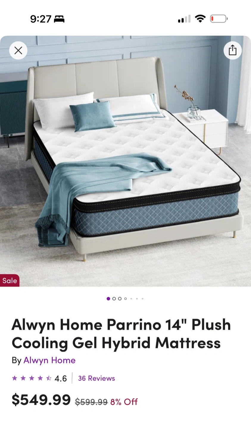Selling a brand new Alwyn Home Parrino 14" plush cooling gel hybrid mattress. Just opened its package, not used.