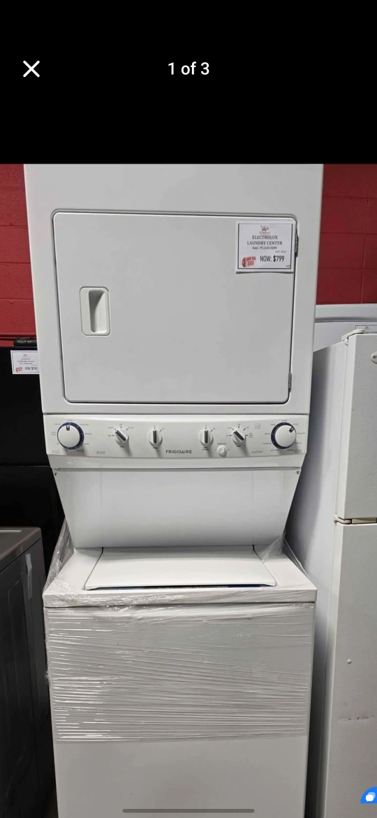 Selling a Frigidaire stacked washer and dryer laundry centre. It's in great condition and ready to go! Perfect for saving space in your home or apartment