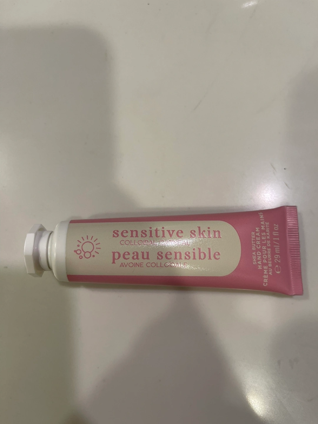Selling a tube of hand cream for sensitive skin. It's a shea butter hand cream that comes in a 29ml / 1 fl oz tube. Perfect for keeping your hands moisturized! New