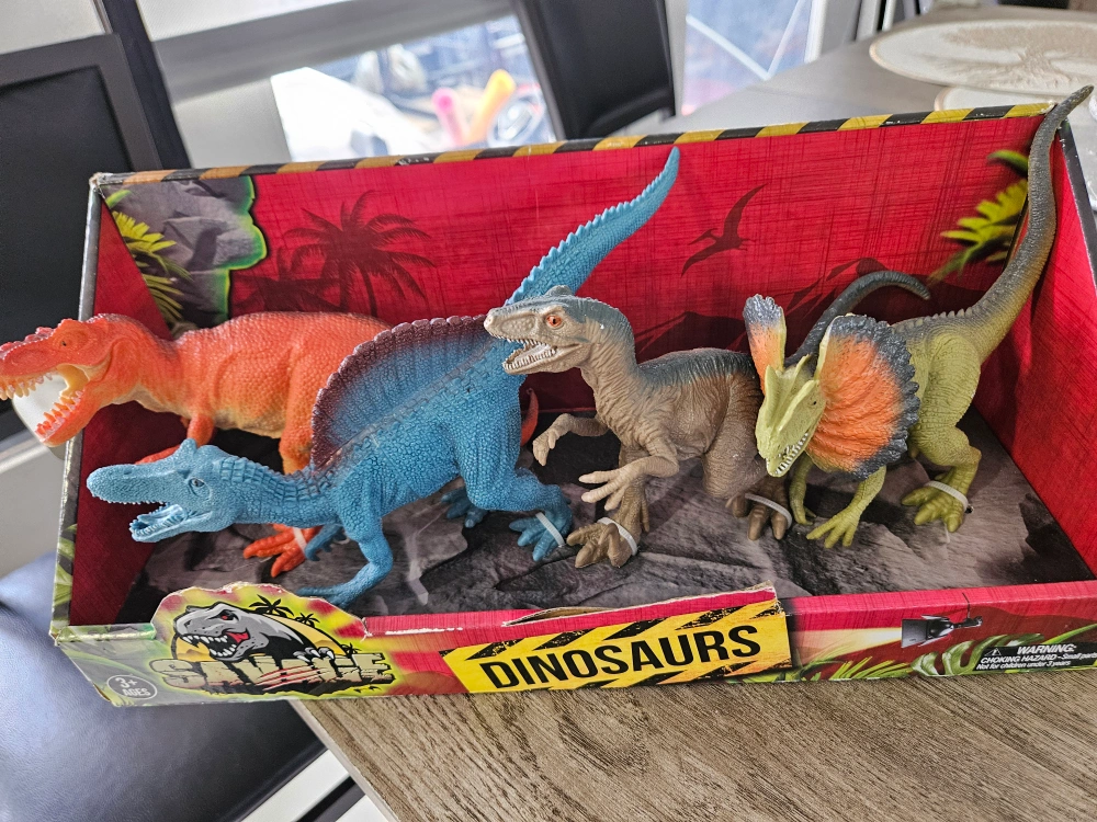 Selling a Dino Valley dinosaur set and a Matchbox car set! Both are in great shape and ready for a new home. The dinosaur set features a variety of different dinosaurs, and the Matchbox set includes five cool cars.