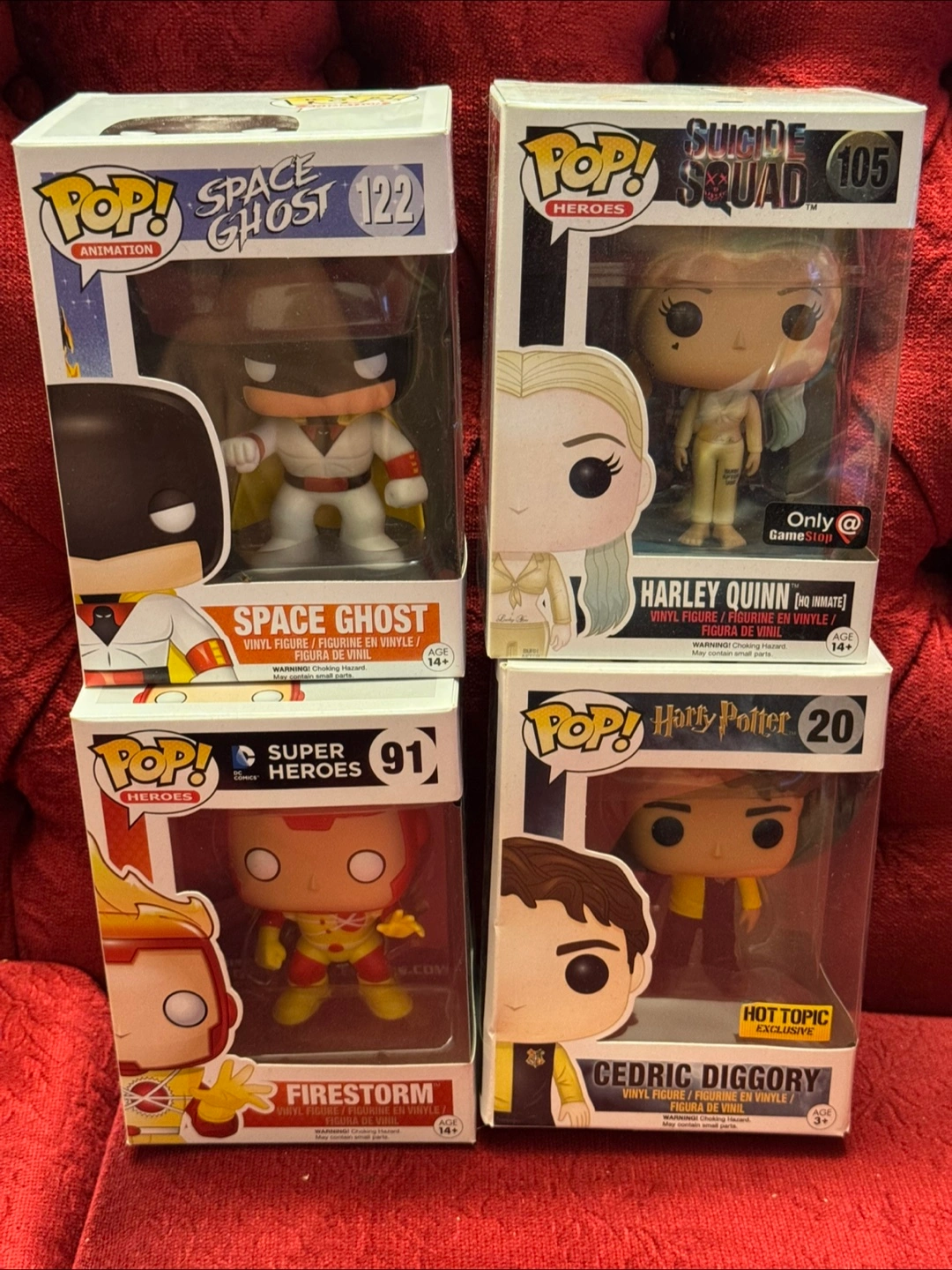 Funko Pop Space Ghost, Harley Quinn, Firestorm, Cedric Diggory