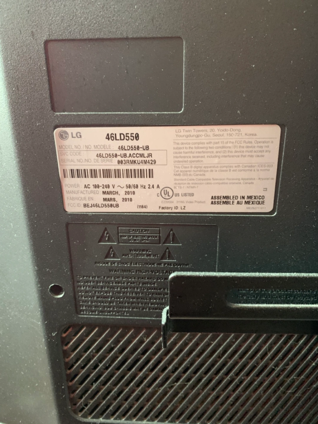 46” LG TV with Swivel Stand