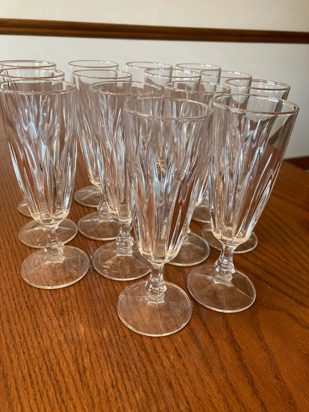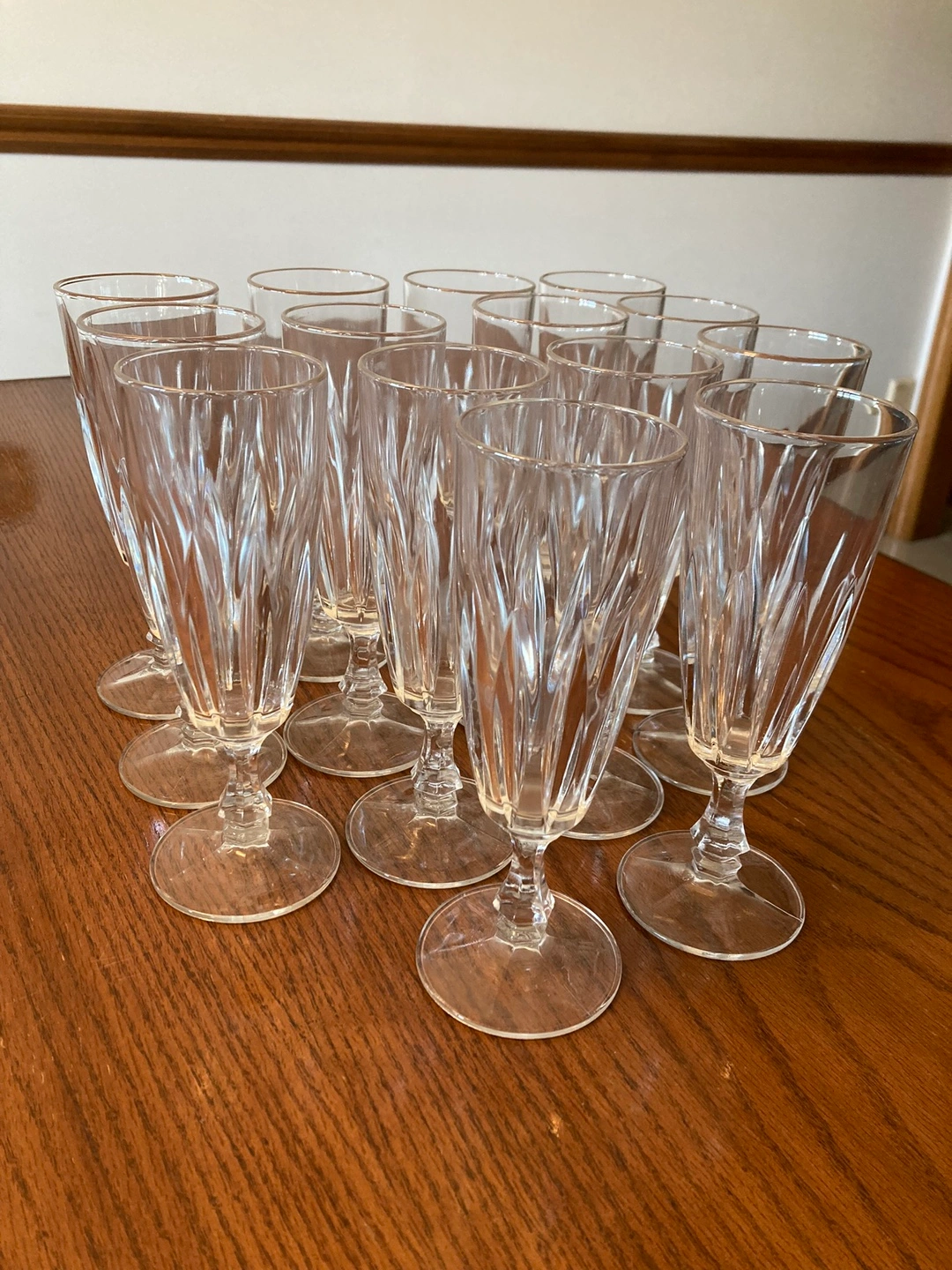 Buy & SellSet of 14 Clear Stemmed GlassesSet of 14 Clear Stemmed Glasses$35Set of fourteen elegant, clear crystal champagne flutes 🥂/glasses. Cut glass design. Perfect for entertaining.WHERE TO MEETHomeView MapSELLERSandyWoodbridge432 reviews0 chats·0 favorites·35 viewsSEND CHAT TO SELLERHi Sandy! I’m interested in your listing.Hi Sandy! I’m interested in your listing.Get the Karrot app to chatSign In to chat