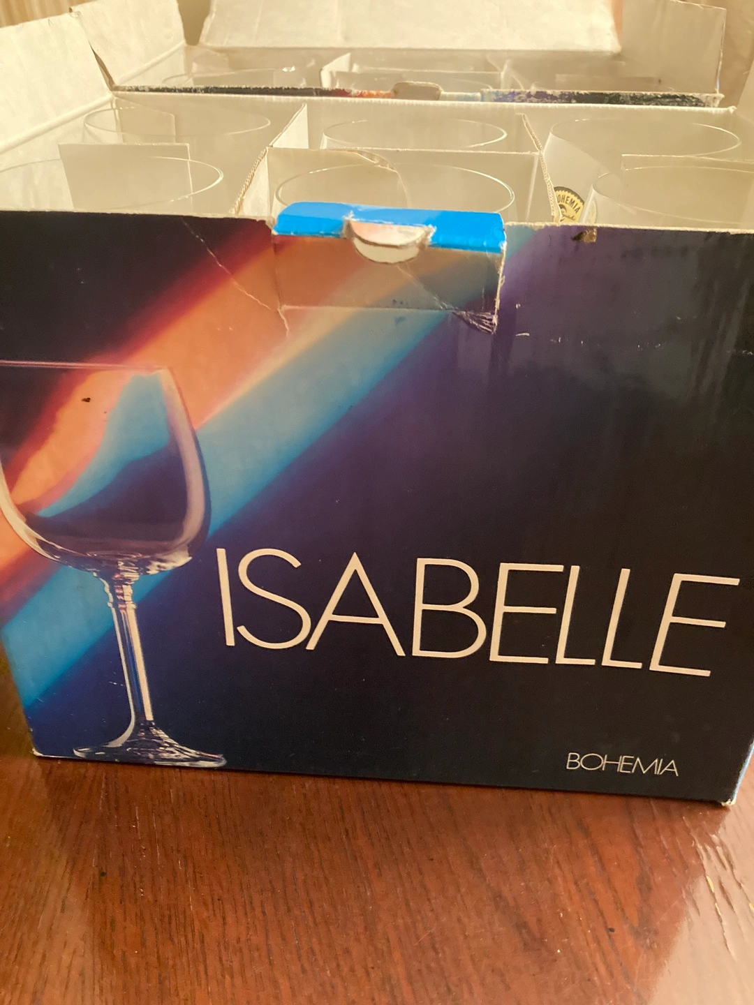 2 Set of six 230ml Isabelle wine glasses. Bohemia Crystal. Made in Czechoslovakia. New in box.