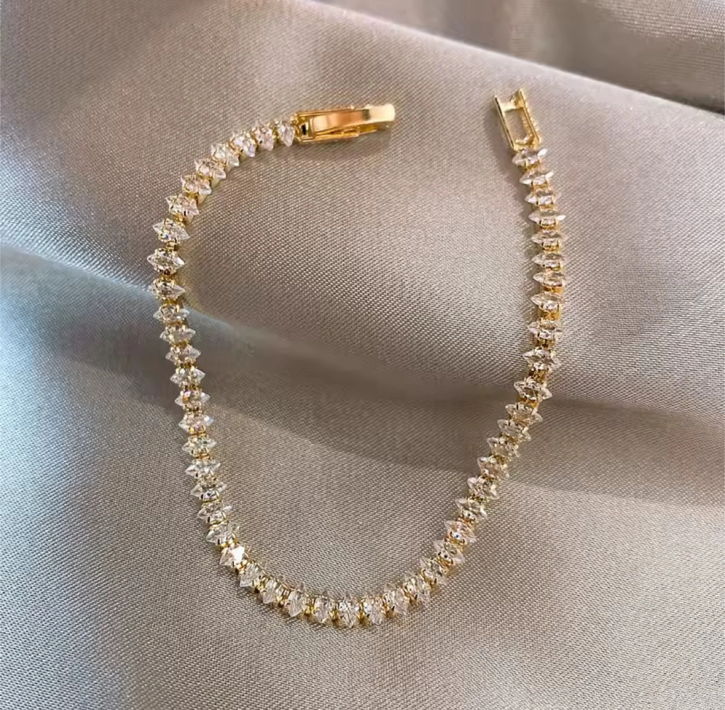 Elegant and Elite tennis bracelet topaz gemstones 18k gold plated.