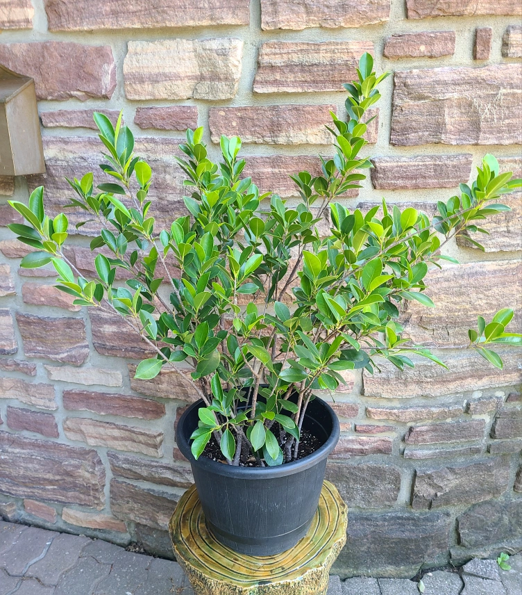 Healthy and hearty ficus. Stands at over 2.5 feet tall with long reaching branches and beautiful leaf pattern.