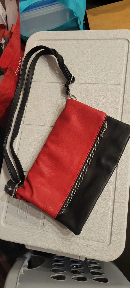 Selling a stylish clutch featuring a striking red and black colour block design! It comes with a convenient strap for easy carrying. Perfect for adding a pop of colour to your outfit!