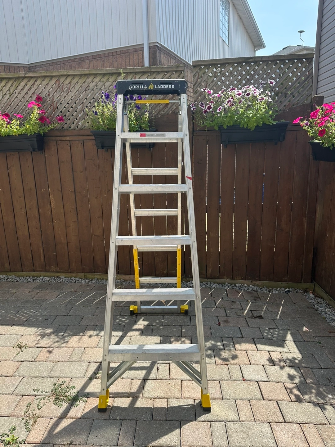 Gorilla brand 14 FT. REACH ALUMINUM 2-IN-1 EXTENSION MULTI-POSITION LADDER WITH PROJECT BUCKET, 300 LBS. CAPACITY, TYPE 1A DUTY RATING