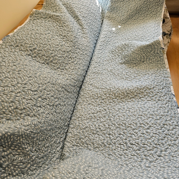 Selling an elegant floral quilt coverlet and pillow sham set from QE Home! King size. It's in excellent condition. The coverlet was barely used; the shams are unused. The fill is made of 100% polyester and the shell/exterior is 100% recycled microfibre.