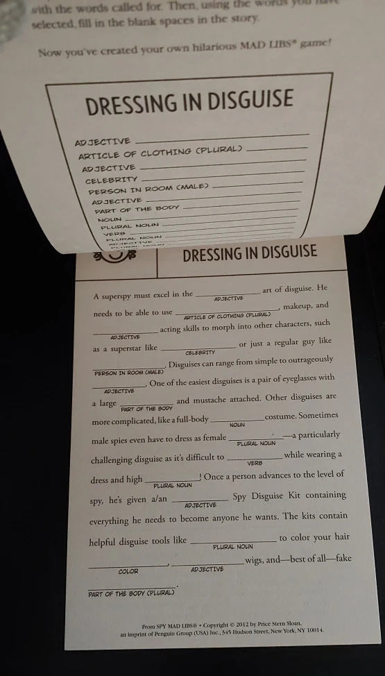 Buy & SellLootcrate Spy Mad LibsLootcrate Spy Mad Libs$5Spy Mad Libs Brand new, never used! Pickup in Midnapore Xposted ConditionNewWHERE TO MEETCheck LocationView MapSELLERCatherineMidnapore513 reviews0 chats·0 favorites·2 views