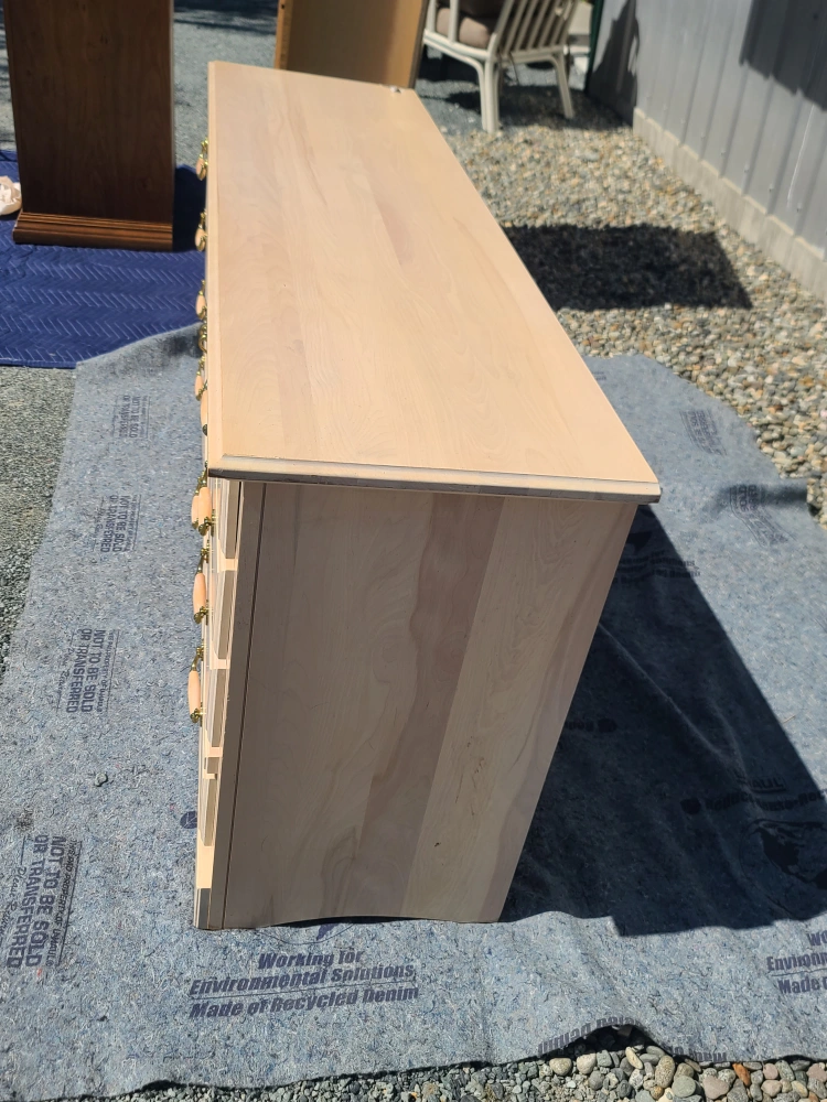 Here's a lovely wooden dresser ready for a new home! It features nine drawers and two doors, offering ample storage space. It's in great condition and would be a wonderful addition to any bedroom or living area. Delivery can be arranged. viewing and pickup by appointment