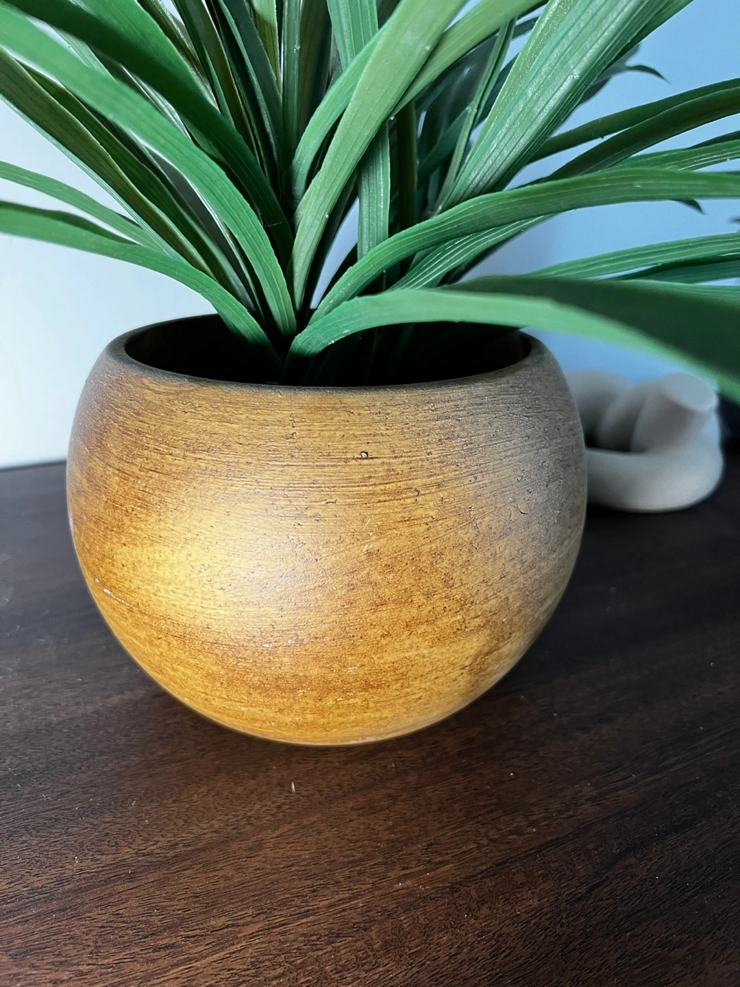23Here's a lovely artificial plant in a round pot, perfect for adding a touch of greenery to any room without the upkeep! It's in great condition and ready to brighten up your space