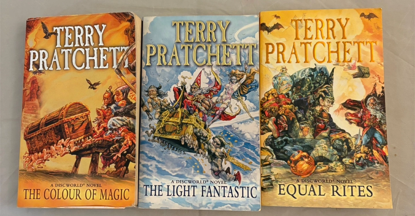Selling three Terry Pratchett Discworld novels: The Colour of Magic, The Light Fantastic, and Equal Rites! They're in good condition and ready for a new home. Perfect for anyone looking to dive into the Discworld series or complete their collection