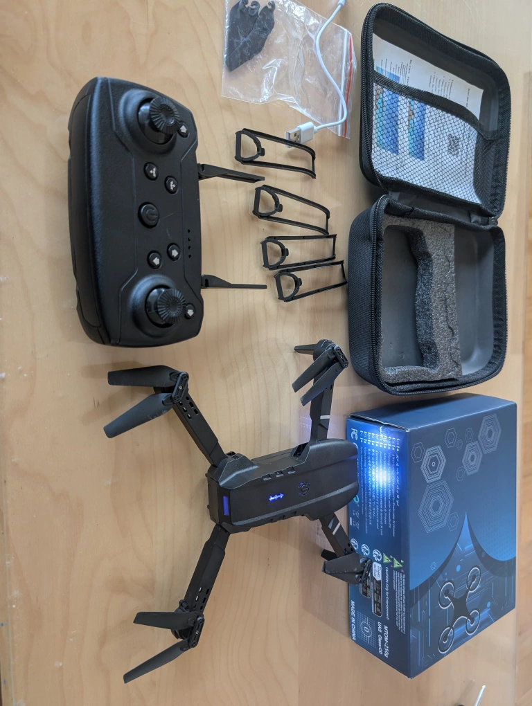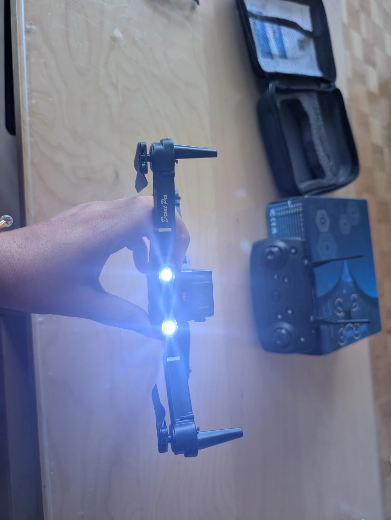 Selling a black Drone Pro that comes with its case! It includes the drone itself, the remote controller, and book manual with instructions. Can also connet to the phone app, has a vintage camera comes with extra parts if needed Everything fits neatly inside the case for easy storage and transport Condition: Gently used, fully functional, and in excellent condition. Includes: Foldable drone Remote control Protective carrying case Charging cable & extra propellers Instruction manual