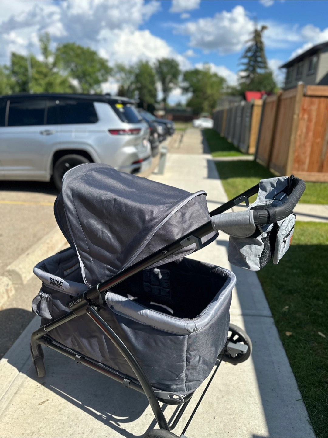 I'm selling my Baby Trend Tour2 stroller wagon, a versatile option for families on the go. It's grey, features a convenient design and has a seatbelt. I bought it a month ago and it's been great.