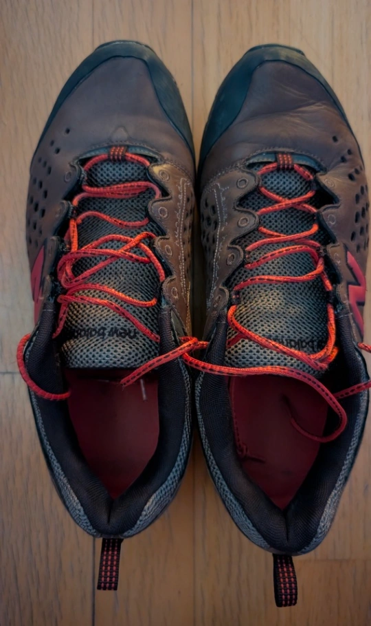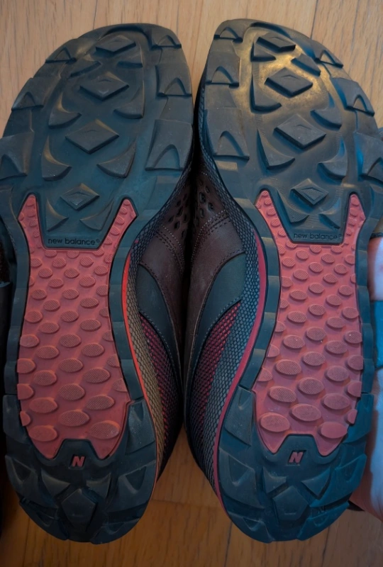 Selling a pair of New Balance trail running shoes in brown and red. They show some signs of wear, but still have lots of life left! Perfect for hitting the trails around town