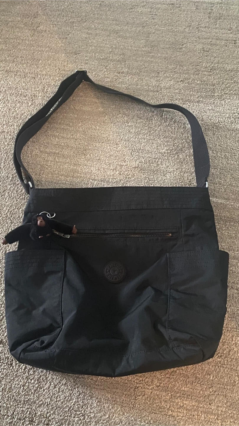 Kipling Black Nylon Shoulder Bag with Monkey Keychain