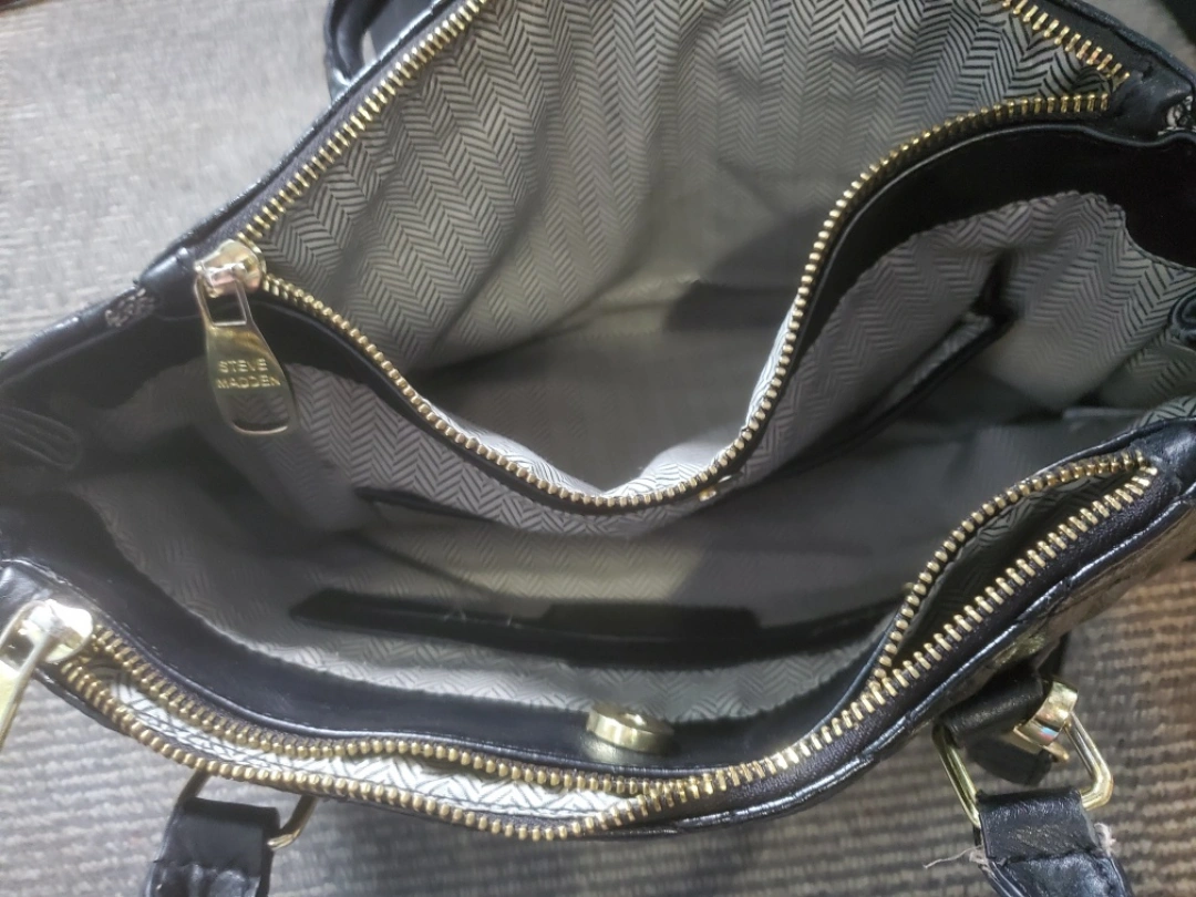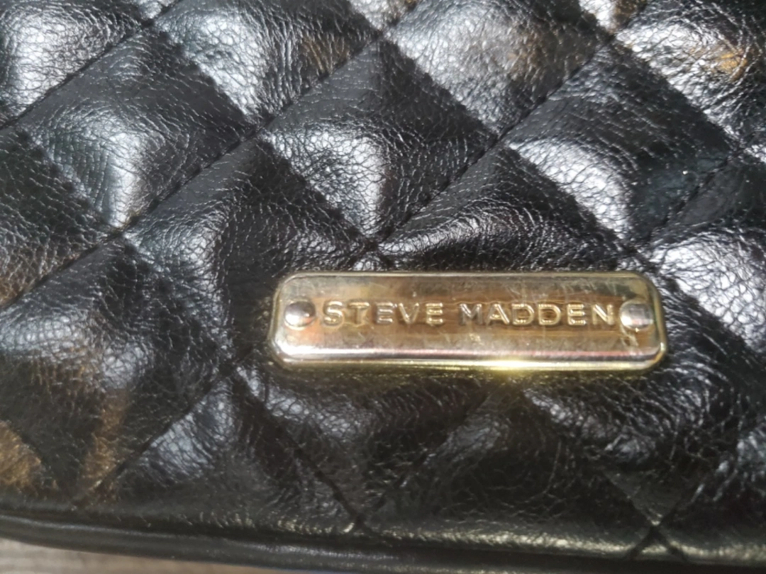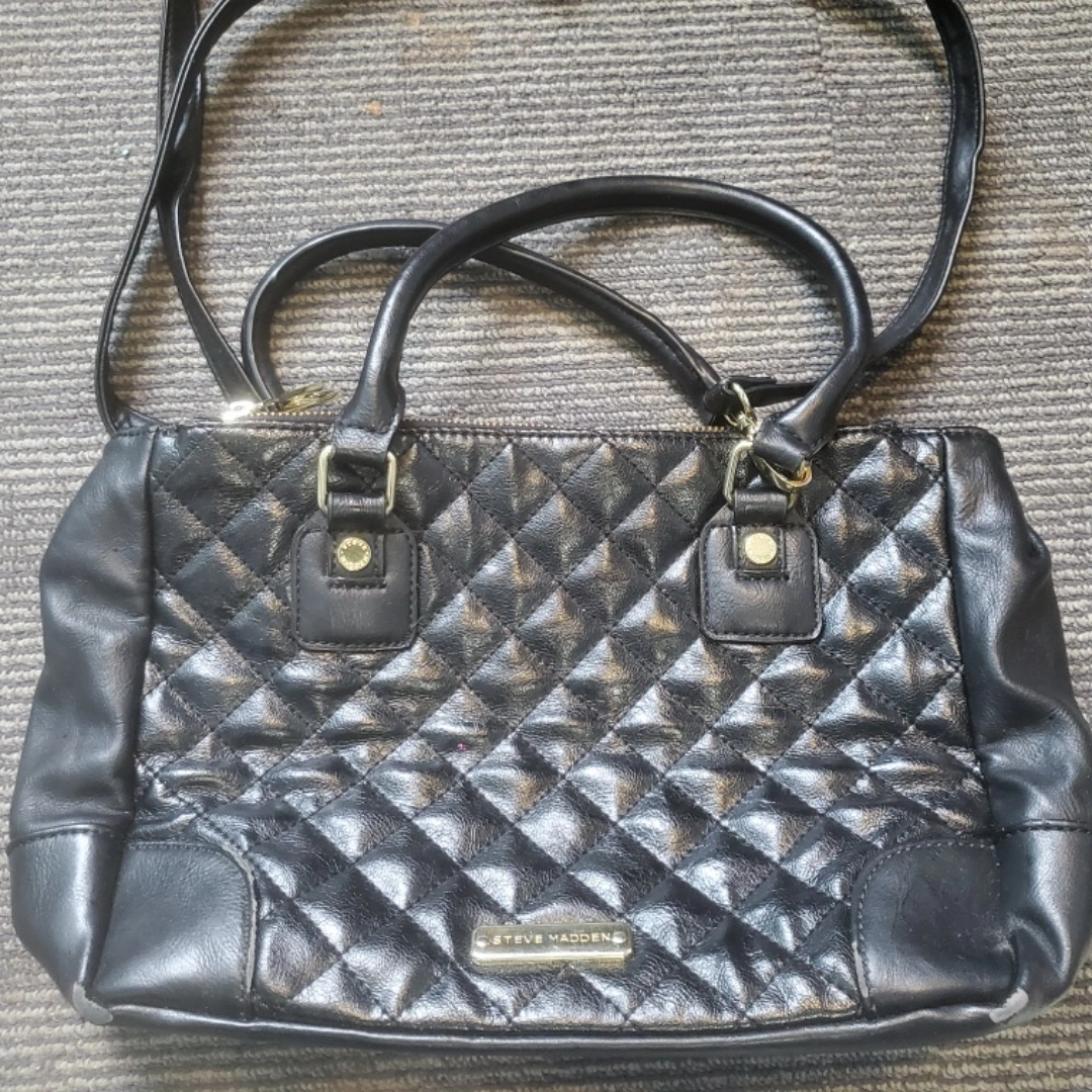 60This is a Steve Madden black quilted purse. It has a zipper closure and an interior lining. It's in good condition and perfect for everyday use!