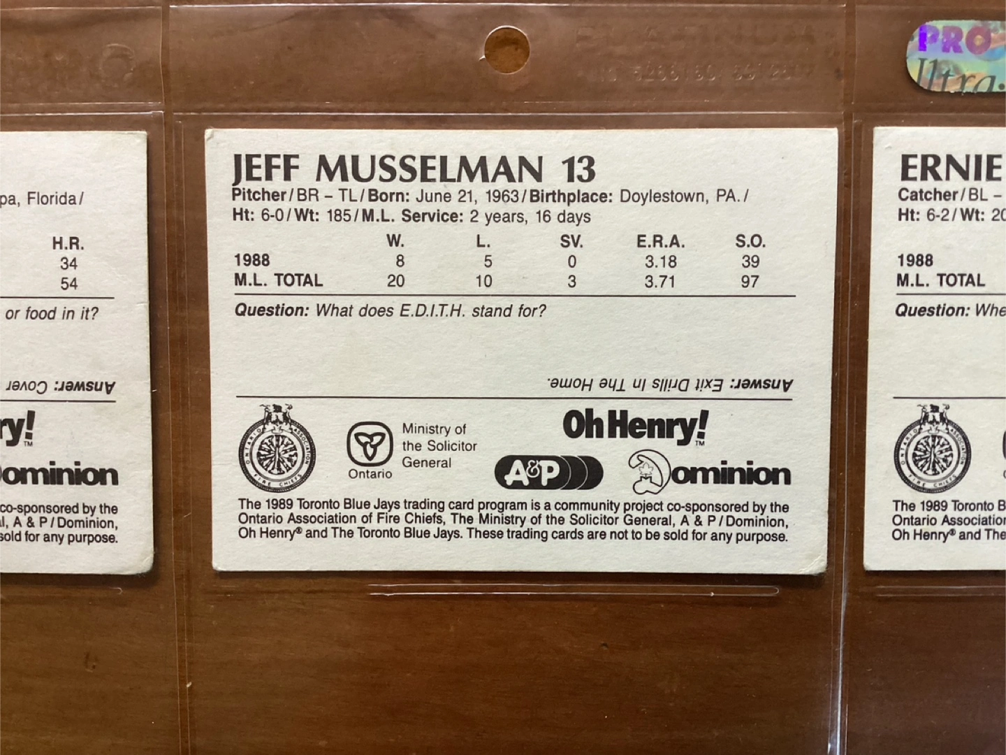 $10.00 for all 3 cards - ERNIE WHITT, JEFF MUSSELMAN & FRED McGRIFF - Shipping available - Located at Pape ave & Cosburn ave Toronto - Call Patrick @ 416-930-8338. - Thanks & check out my other posts