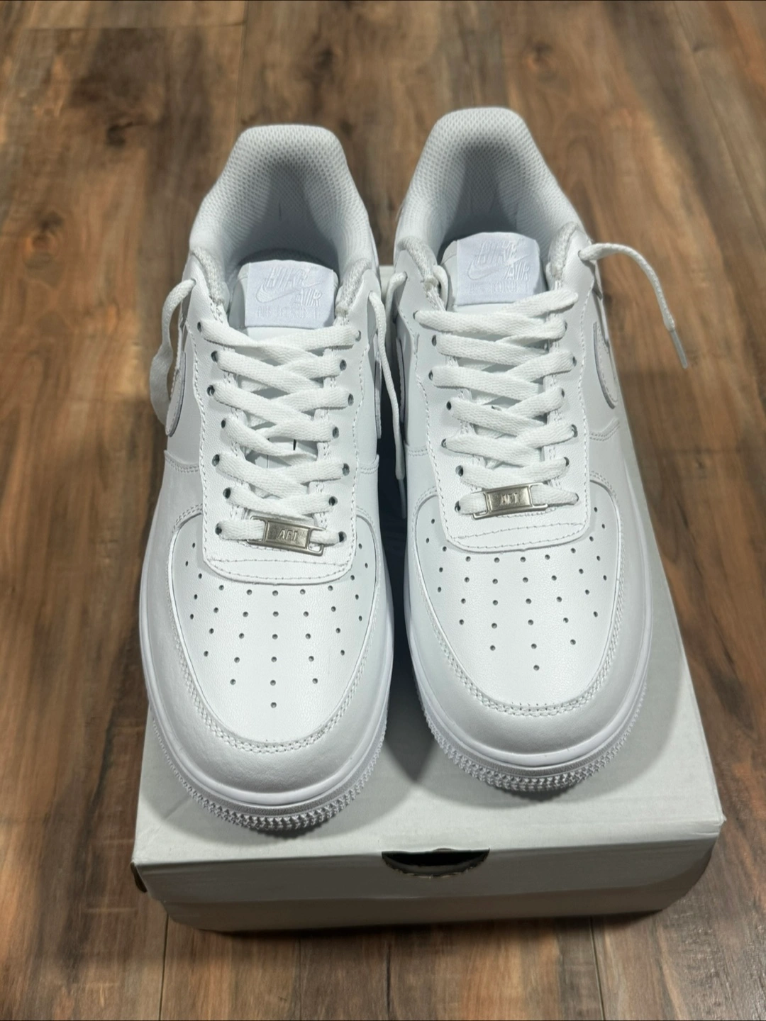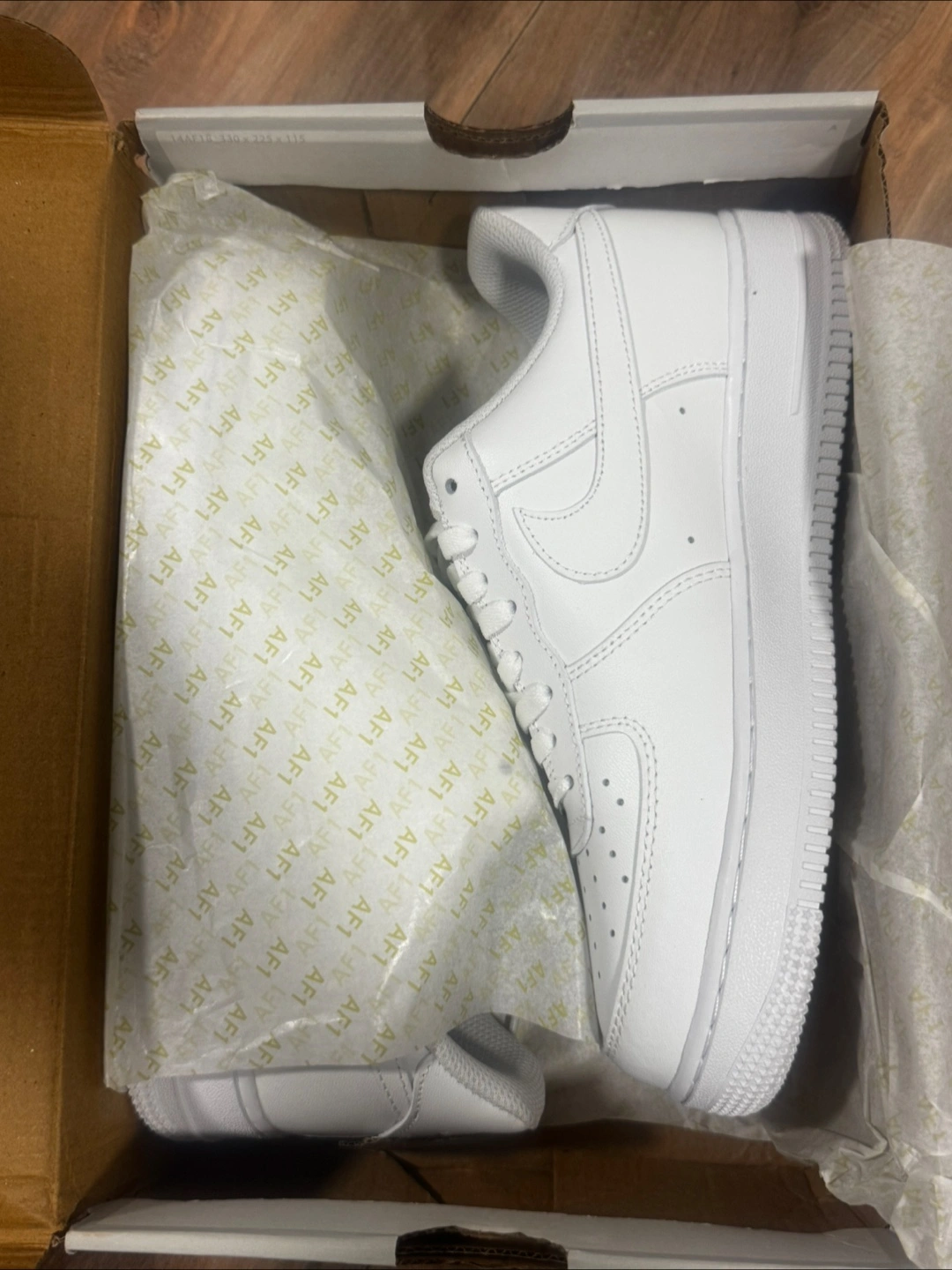 I'm selling a pair of brand new Nike Air Force 1 '07 sneakers in white! They come with the original box. These are a classic and versatile shoe that goes with everything. Perfect for everyday wear!