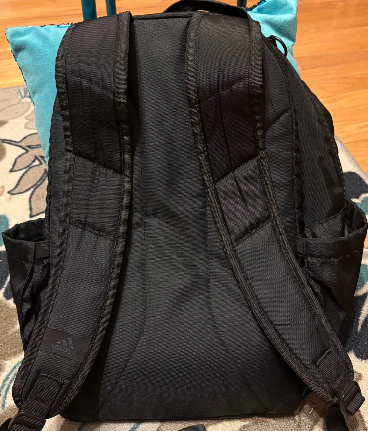 Selling a used black Adidas backpack. It's in good condition and ready for a new home! Perfect for school, sports, travel or everyday use. Has 2 side pockets for water bottle, etc , 3 compartments w/ zippers and 2 smaller ones.