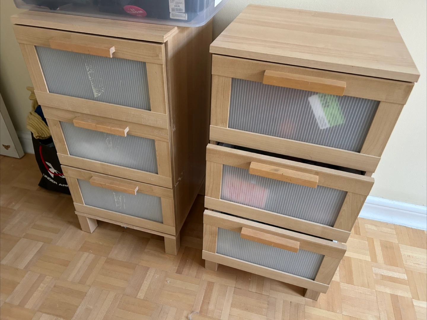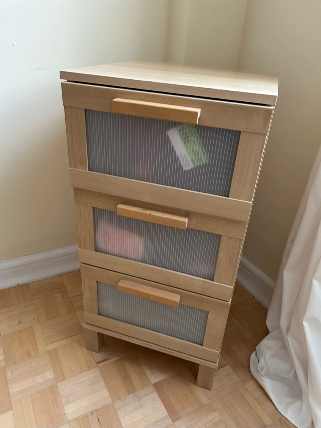 Selling an IKEA Rast nightstand with 3 drawers! It's perfect for a small space and provides ample storage. The light wood finish is neutral and will match any decor