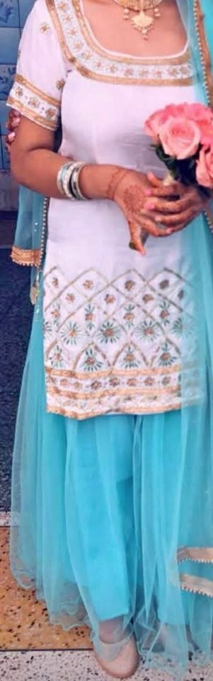 Purchased from Surrey Bc. Only worn once for a few hours. Colors: white, gold and turquoise. Chunni/dupatta included and is made out of net. For exact measurements please send a message